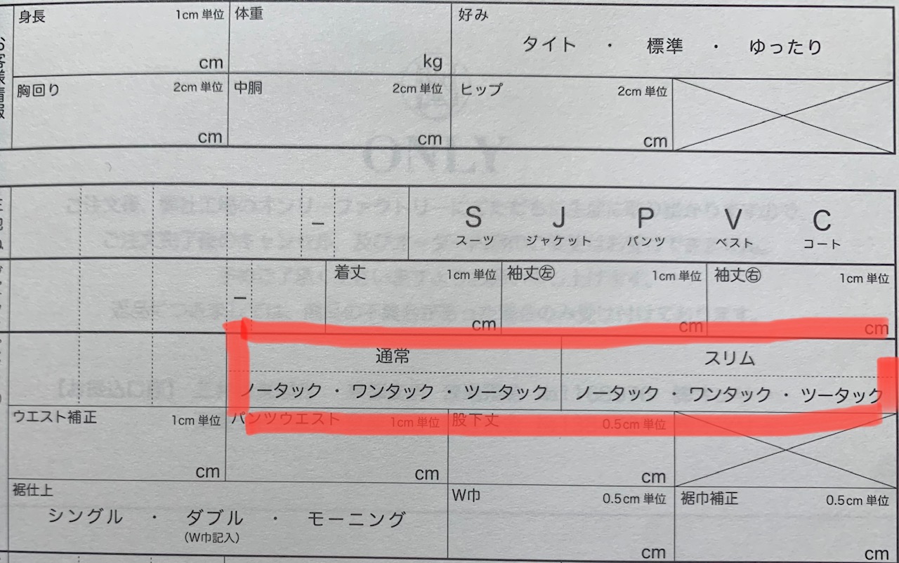 今回は人気のスリムをベースに採寸します。