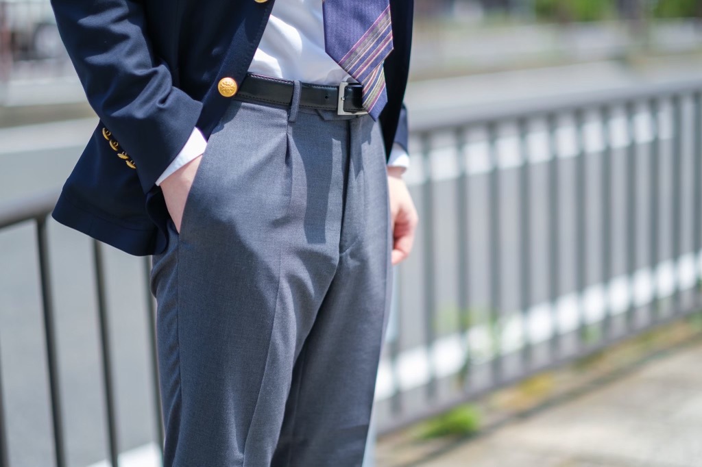 このパンツはストレート型ですがテーパード型にタックを入れることもオーダーなら可能!!