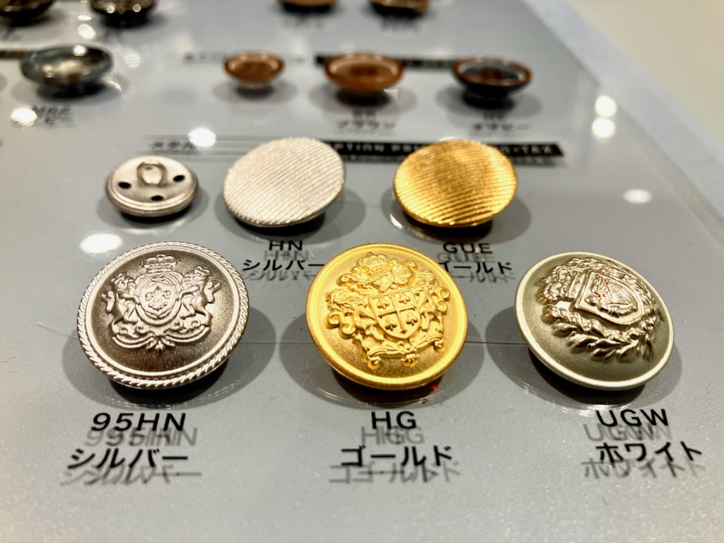 ちなみにブレザー向けの真鍮(メタル)ボタンはオプションでどれでも+¥2,200(税込)で変更可能👩