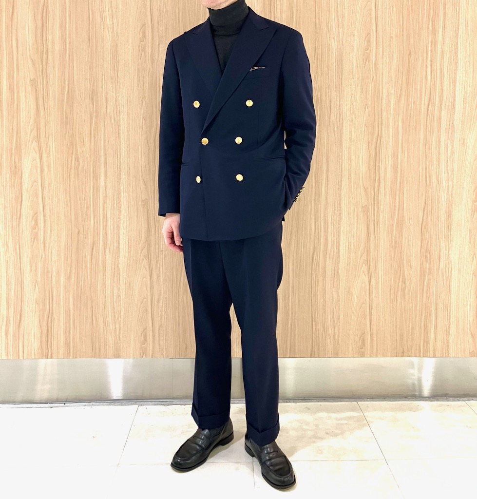 ダブルのジャケットはシングルと比べると前身ごろの生地が多くとられており、重厚感があるのが特徴です。
