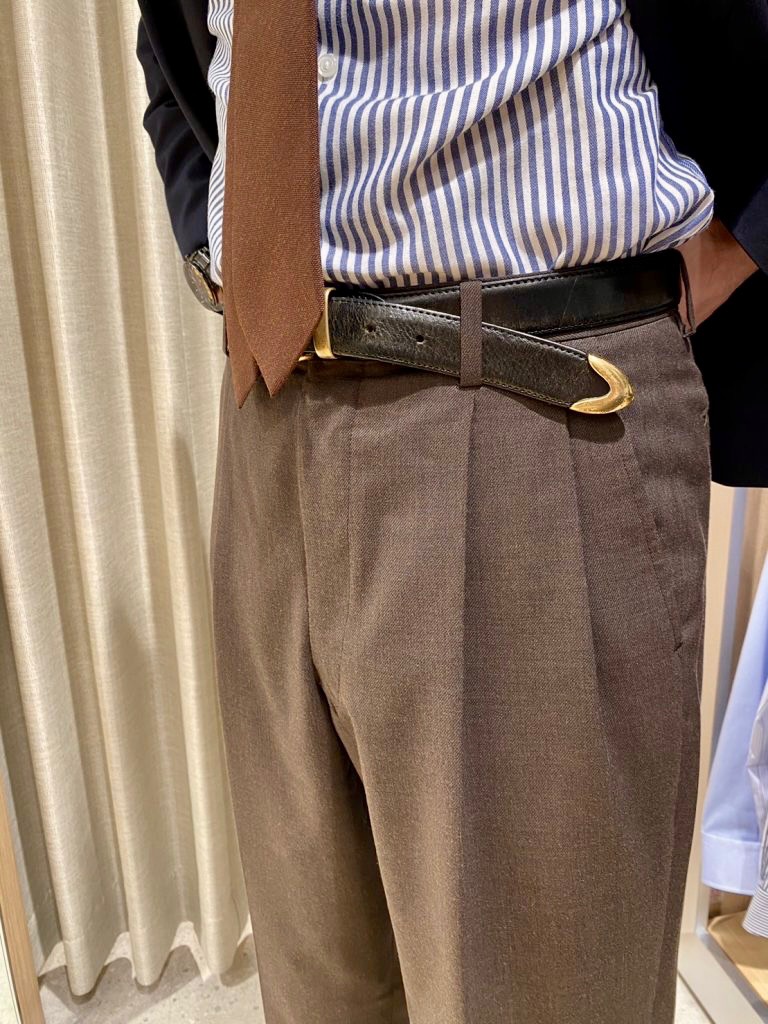 細身スーツのトレンドが終わり、徐々にゆったりめに移行している昨今だからこそ試したい!タック入りパンツ👍