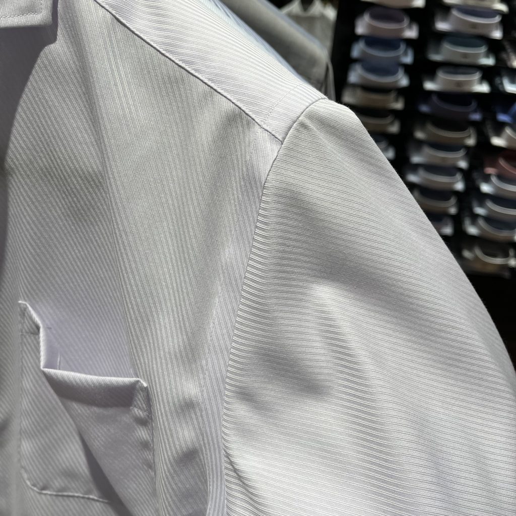 衿・カフスの芯地も通常の形態安定のものよりハリコシがありながら柔らかい1枚芯を使用。