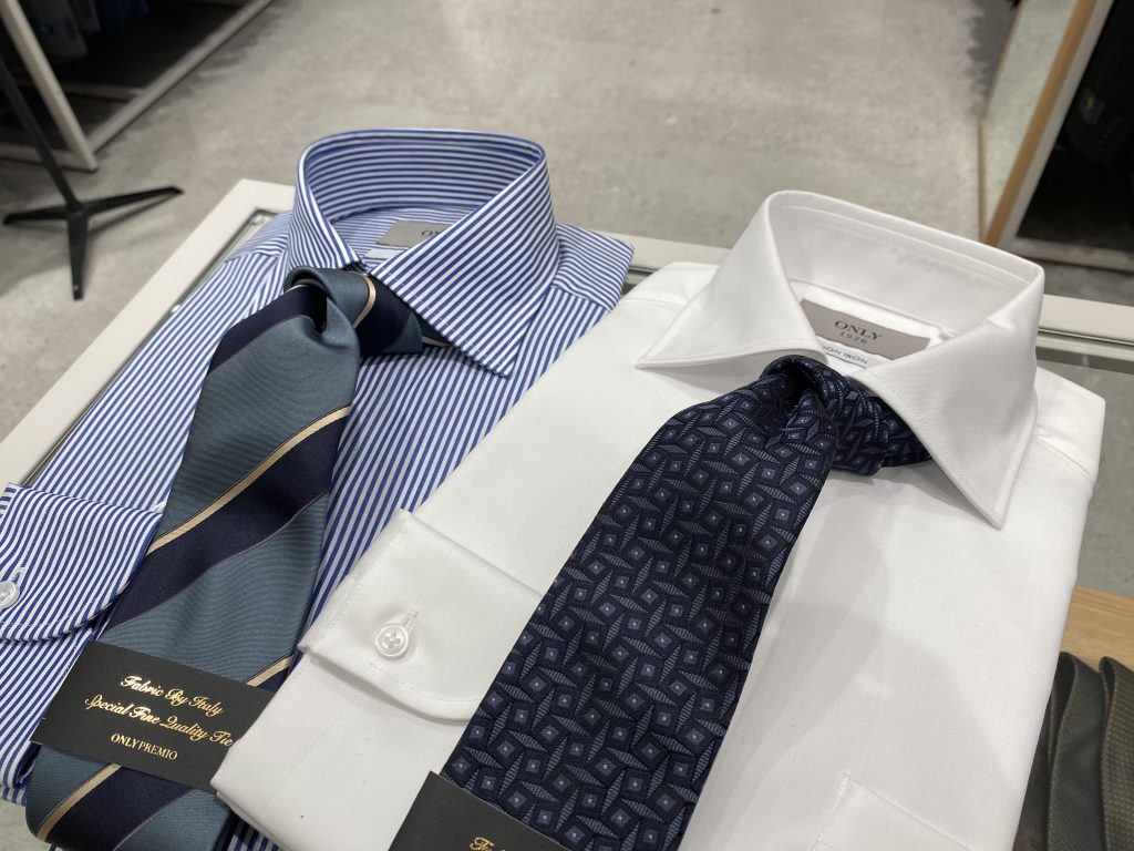 毎日ネクタイを付けられる方は、相性の良いワイドカラーもおススメです!!
