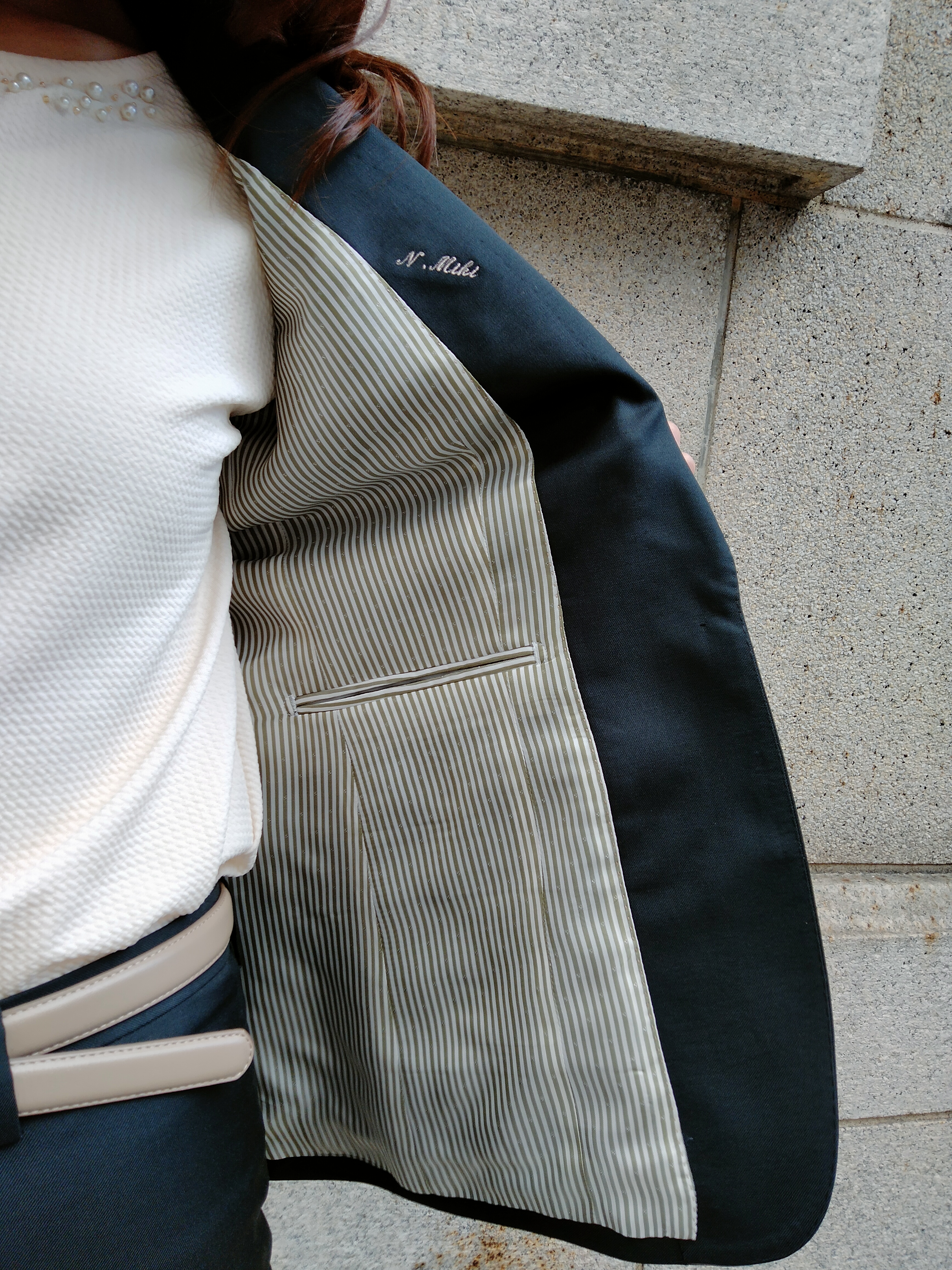 袖裏地はベージュのストライプ柄で上品に✨
