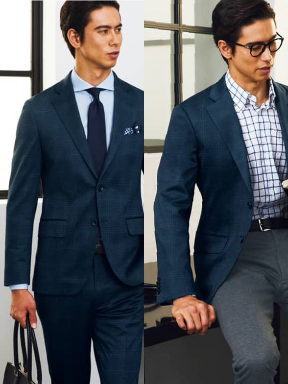 写真左はスーツ、右はジャケパンのスタイリングです。