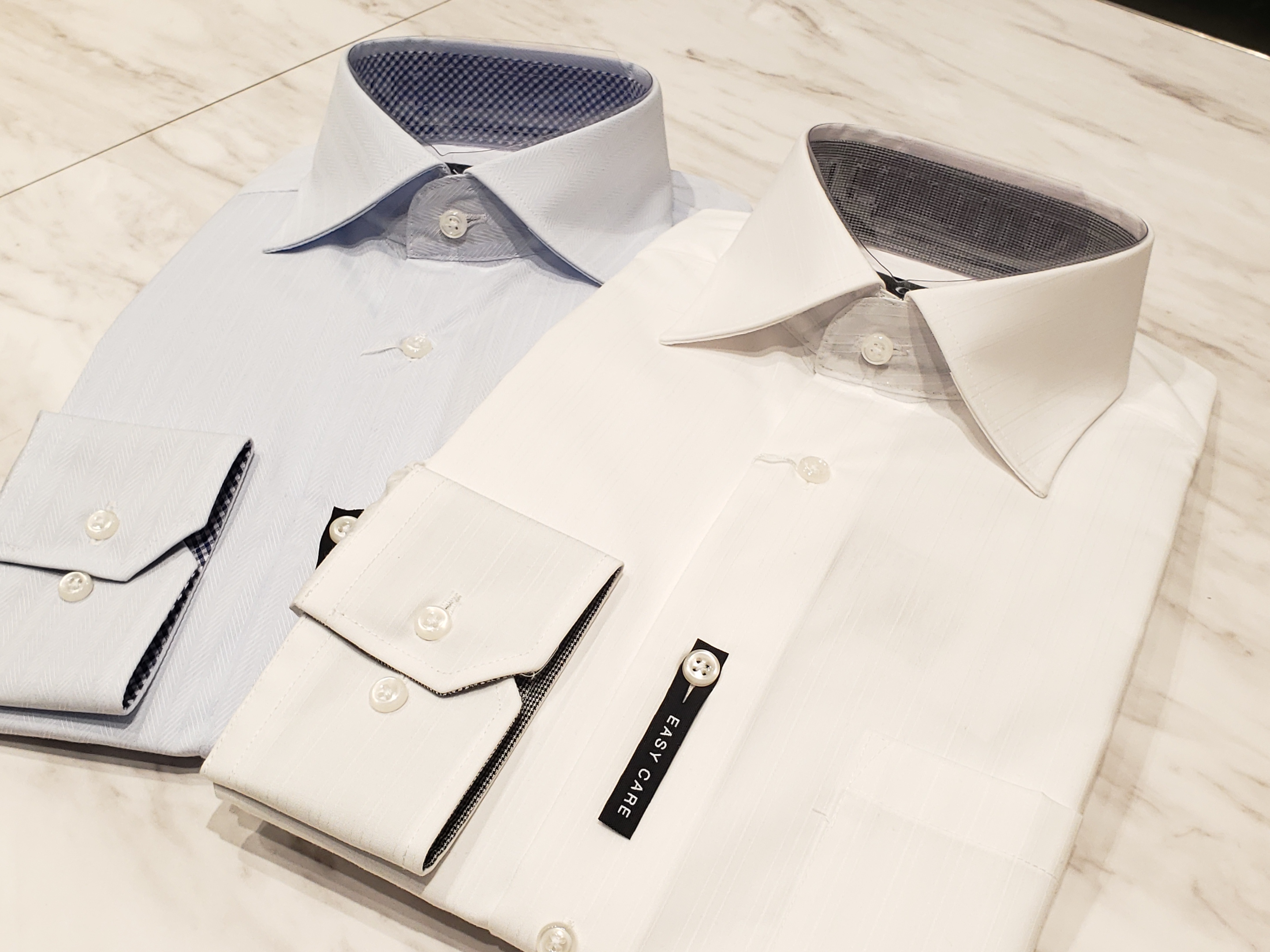 最近だと、綿100%でノーアイロンのシャツがとても人気です!