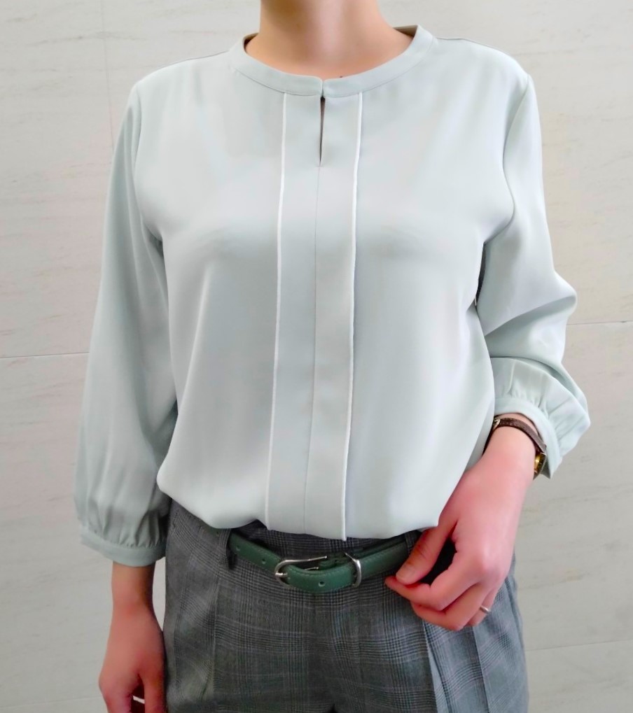 薄いグリーンのカットソーは、