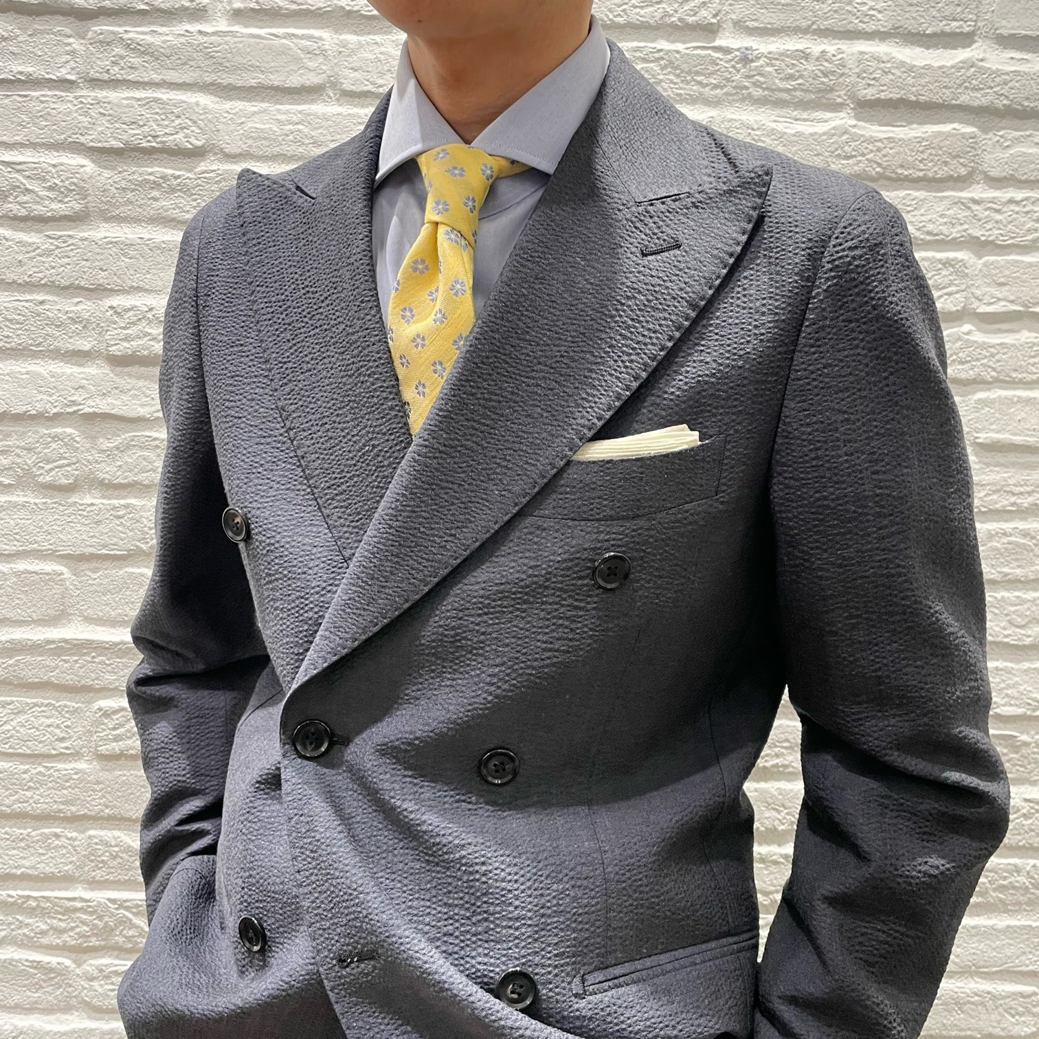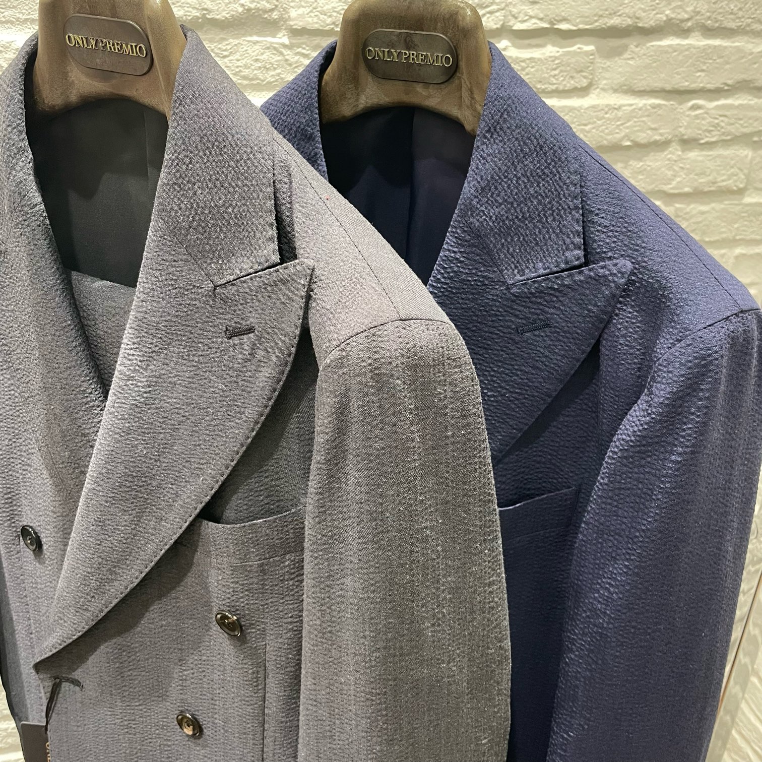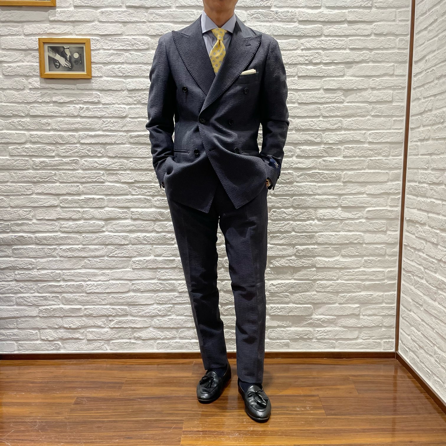 リネン混の涼しげな印象のシアサッカー生地でおしゃれ度がぐぐっとあがるスーツです✨