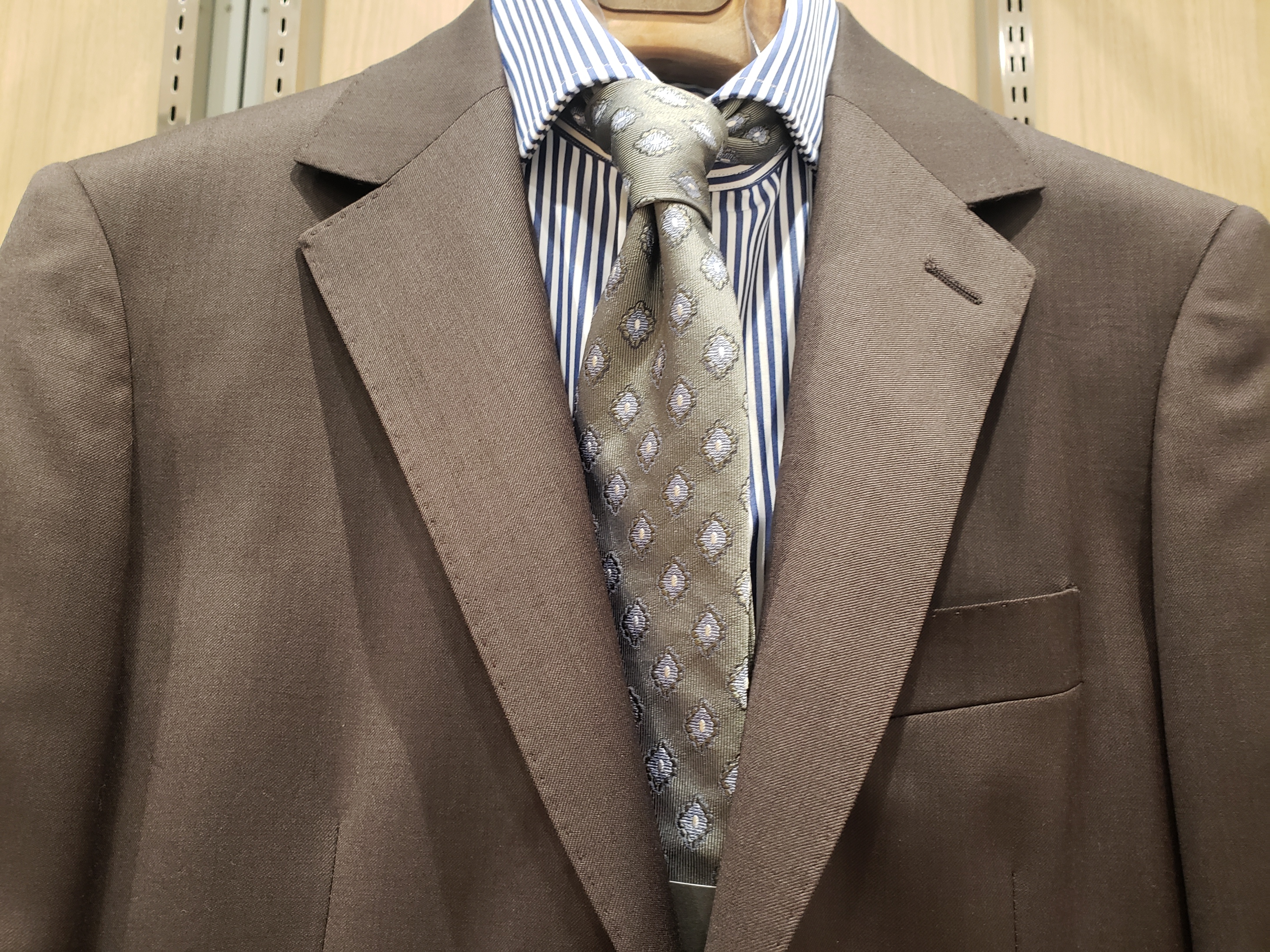 柄on柄で洒落感満載の組み合わせはもちろんですが、王道スタイルでもビシッと決まるのは生地の良さが絡んでくるところですね。