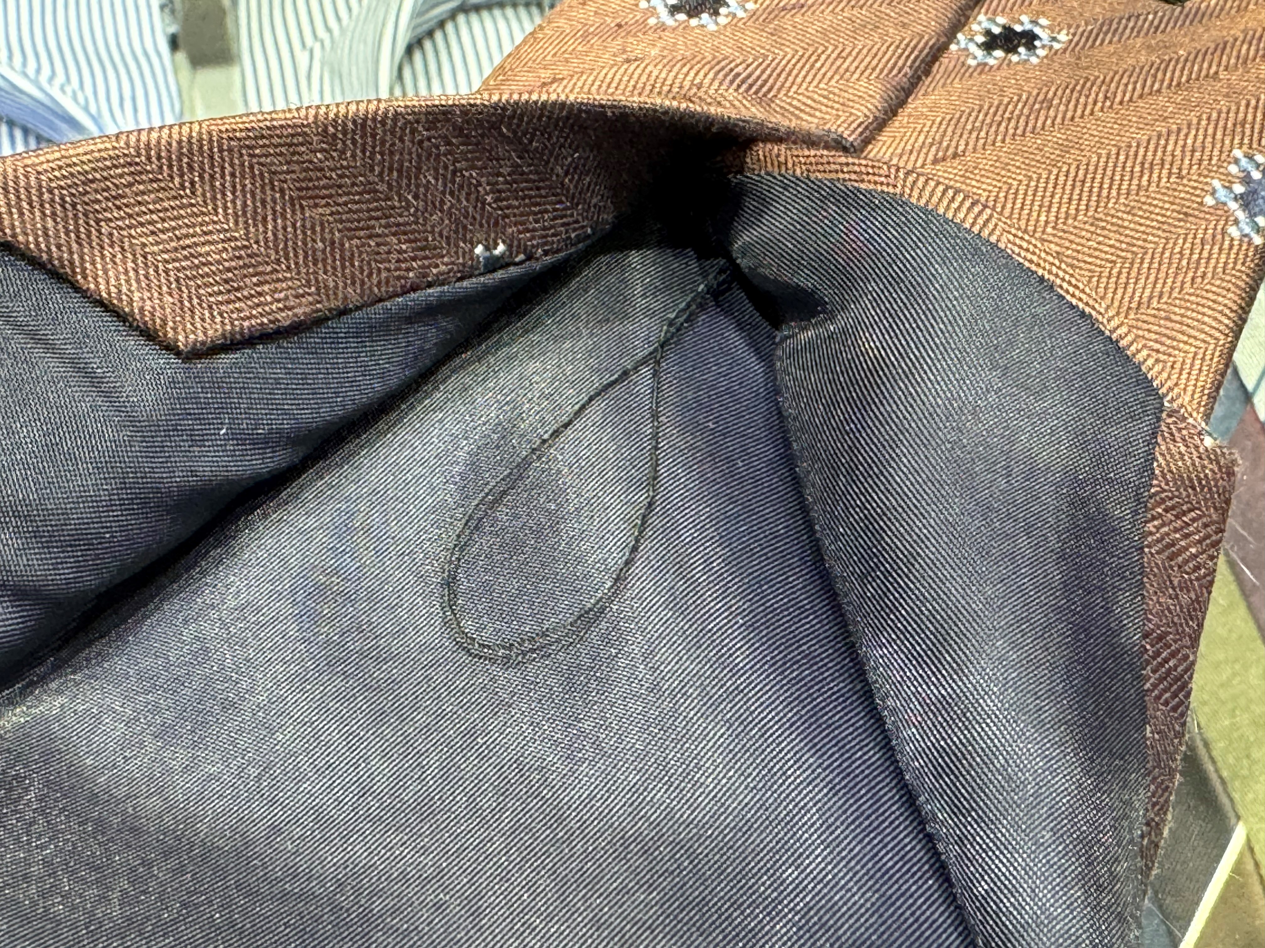 生地の裁断に関しては5,000円を超えるネクタイで雑な裁断をしているものはあまり見たことないので、基本はスルーしていただいて大丈夫です。
