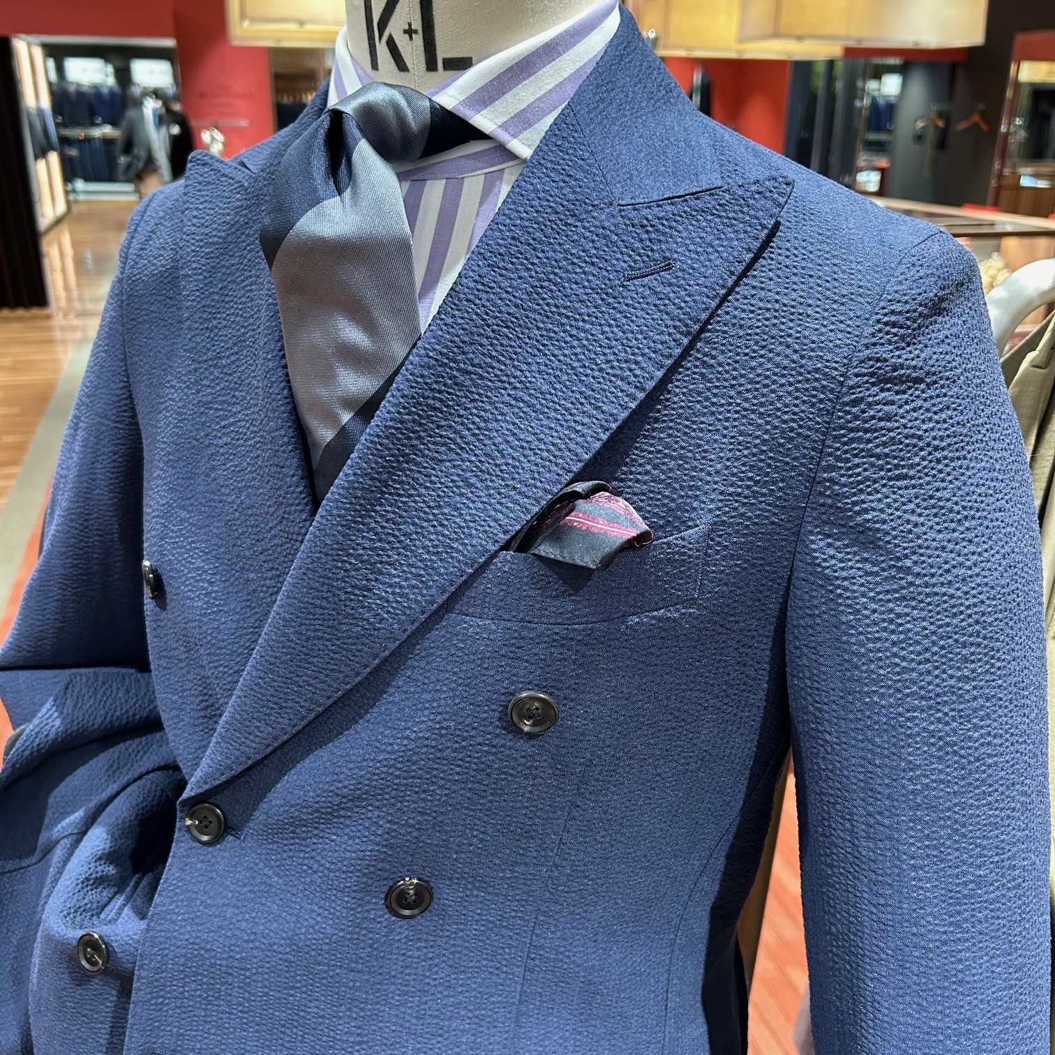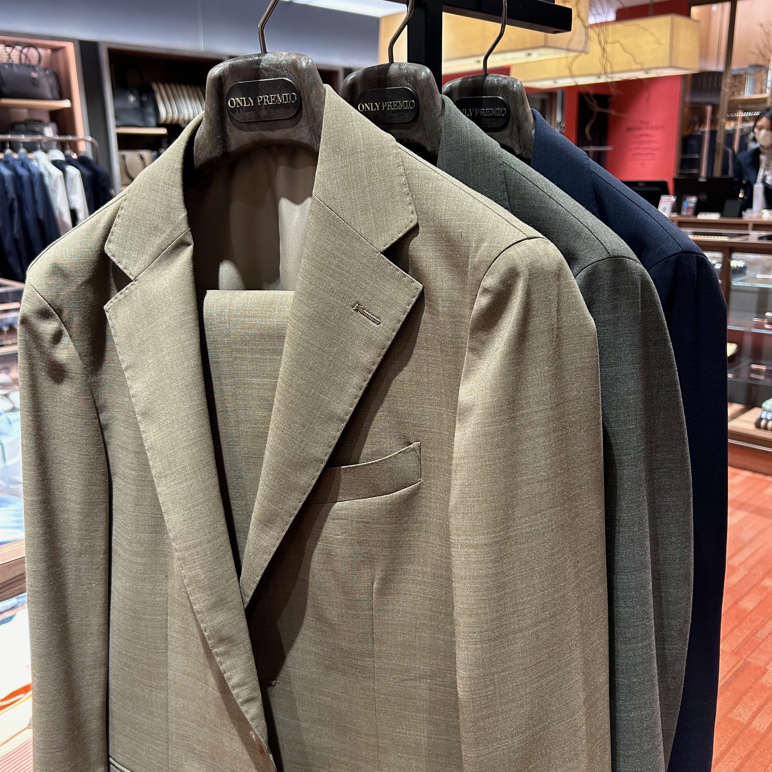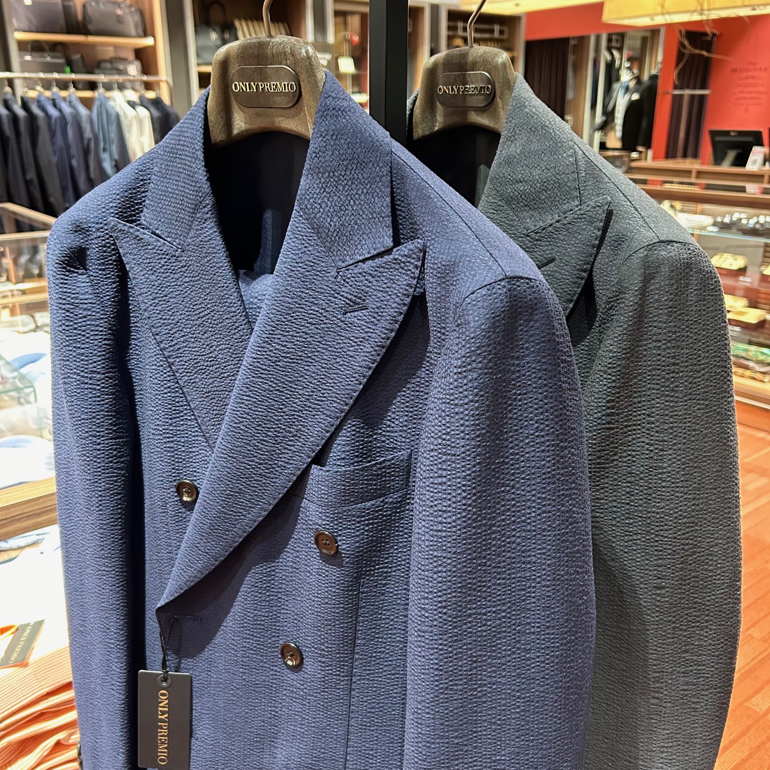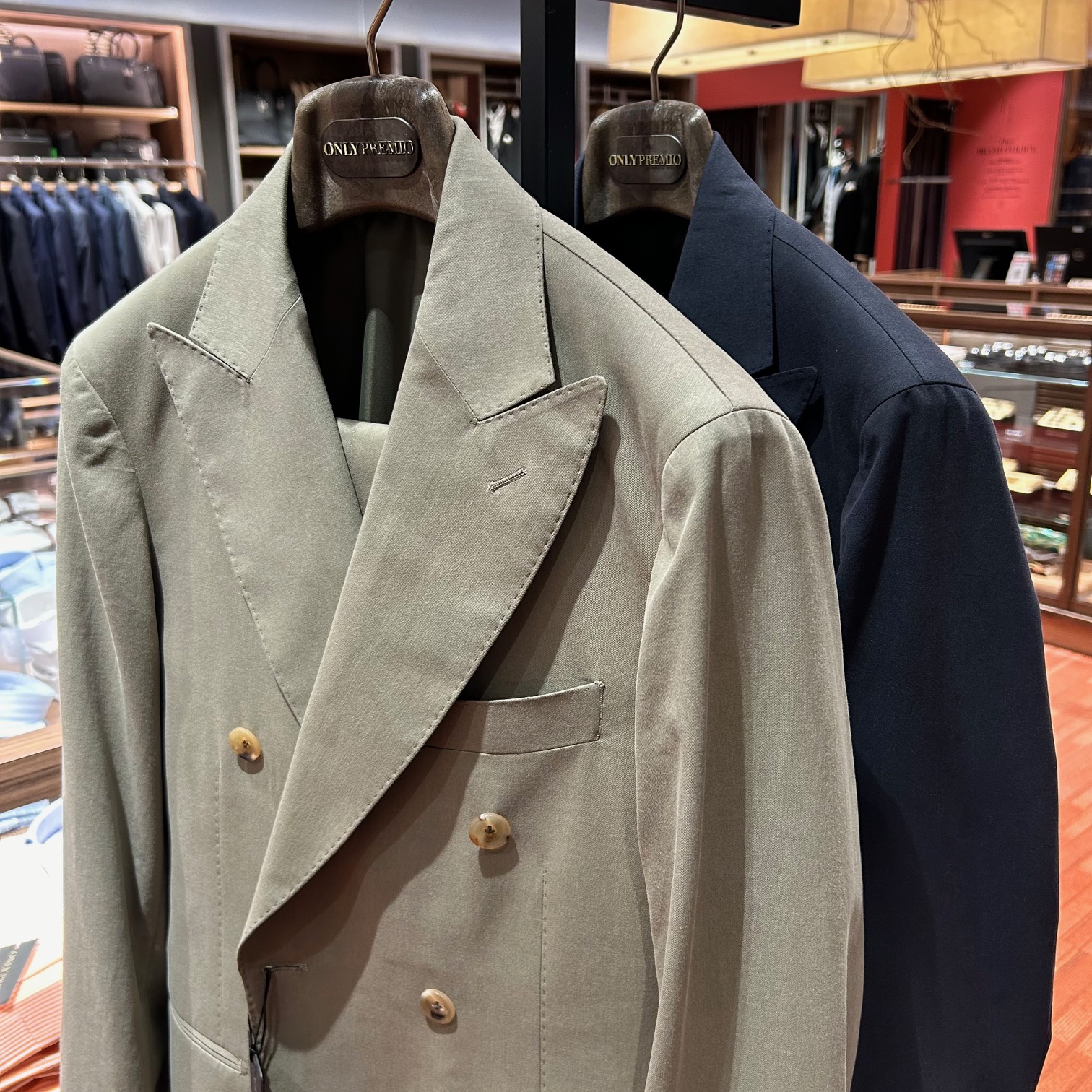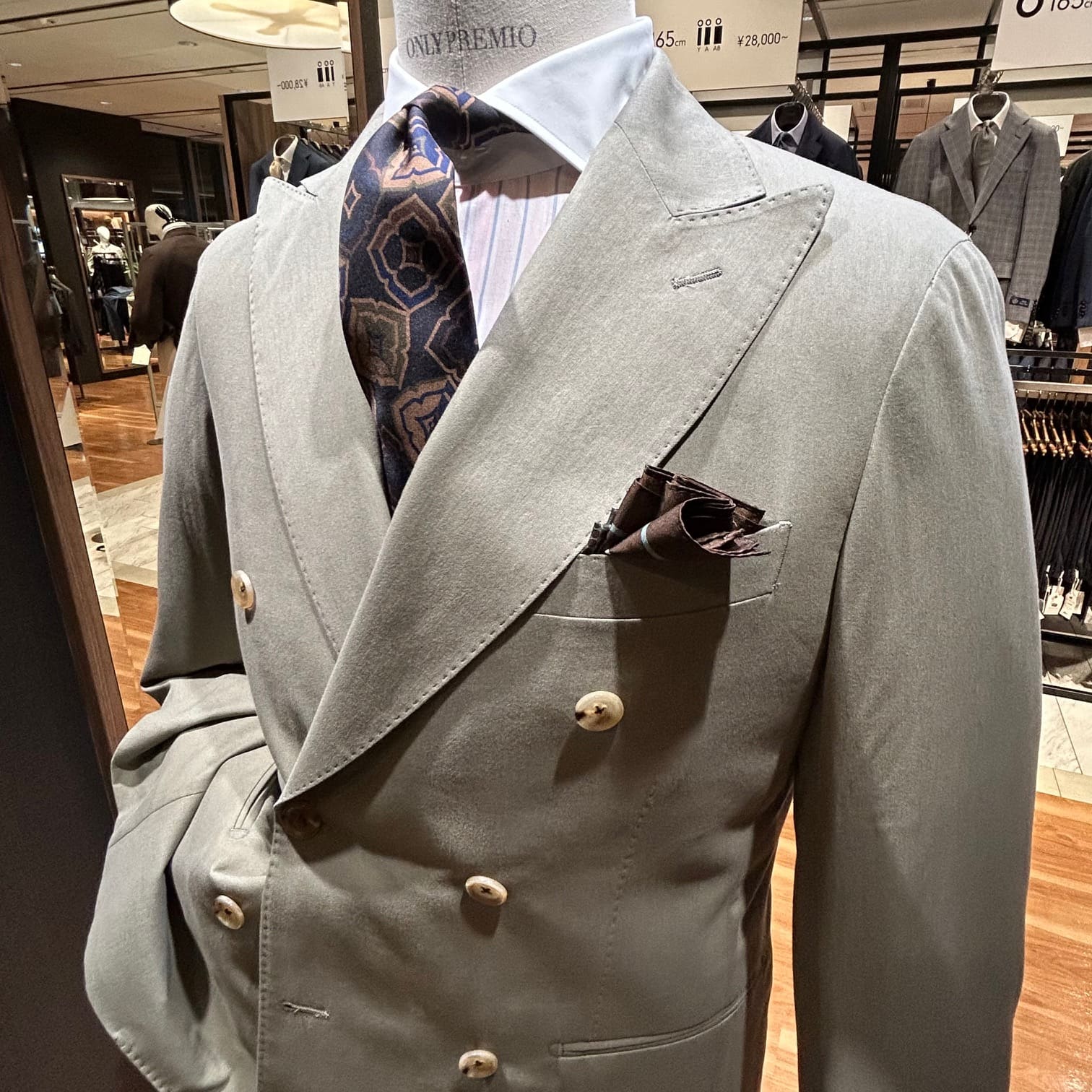 またシワにもなりにくく、パンツのクリースも取れにくいため、清涼感ときちんと感をキープ。パンツはベルトループレスでサイド尾錠を施したクラシックな仕立てとなっており、今季イチオシの自信作です❗