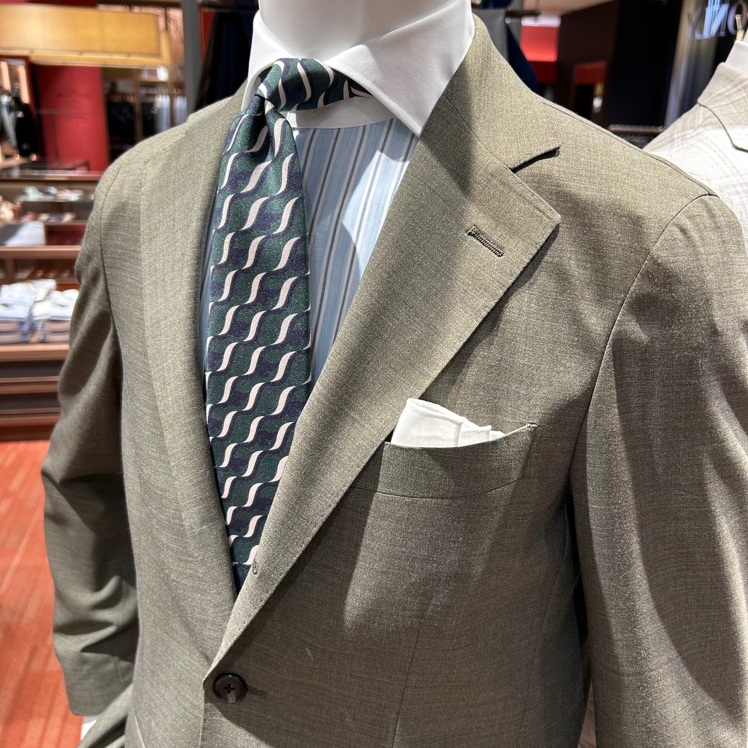 ナチュラルストレッチも効いており、軽さを感じるサンタルチアゼロモデルで仕立てたため窮屈感もなし。