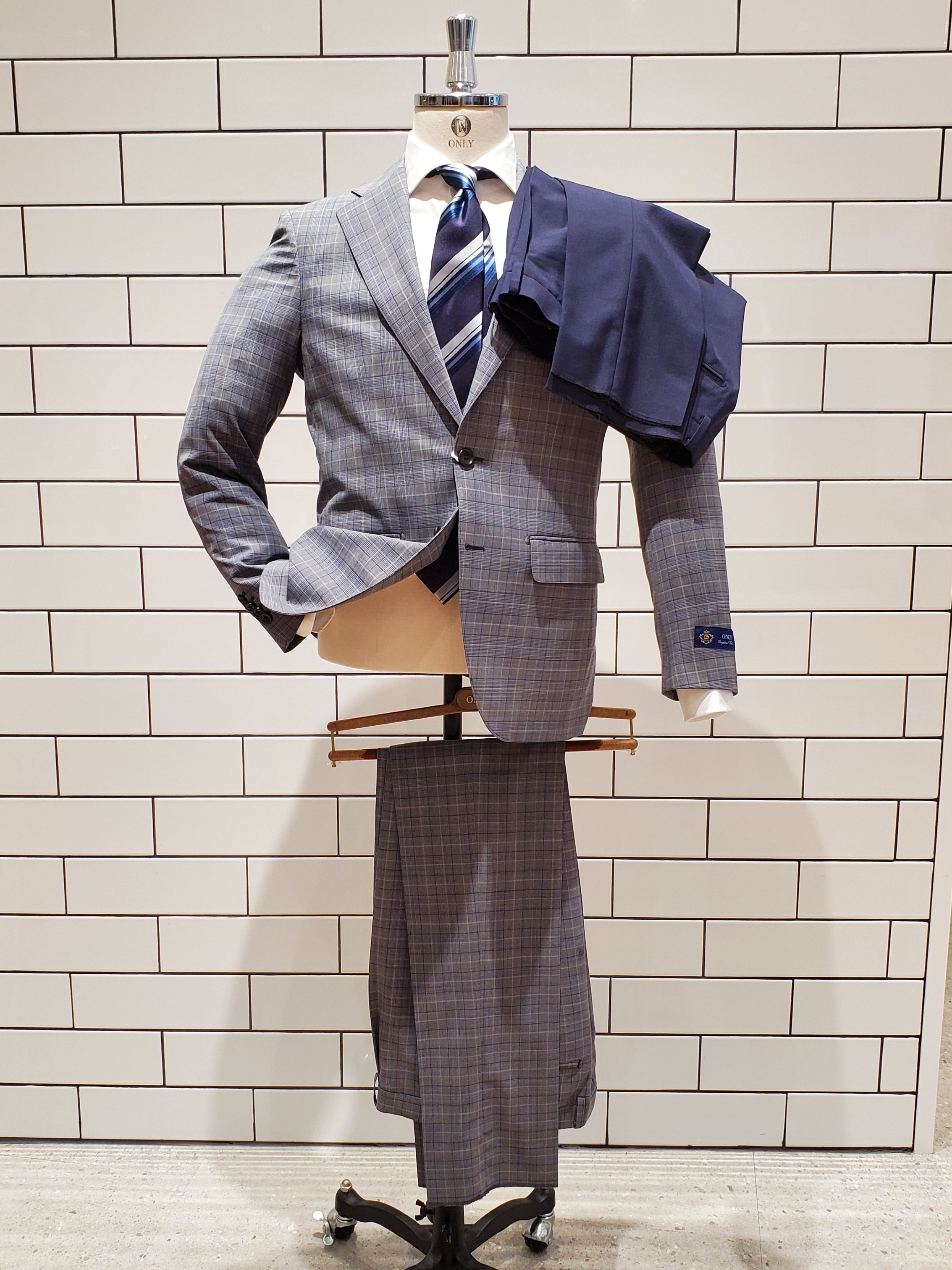ジャケパンスタイルのように、上下別色でもお使いいただける万能スーツ!是非一度お確かめください。