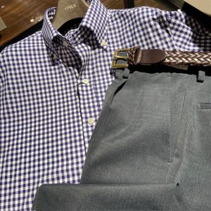 ギンガムチェックシャツで夏でも涼しげなクールビズスタイル。