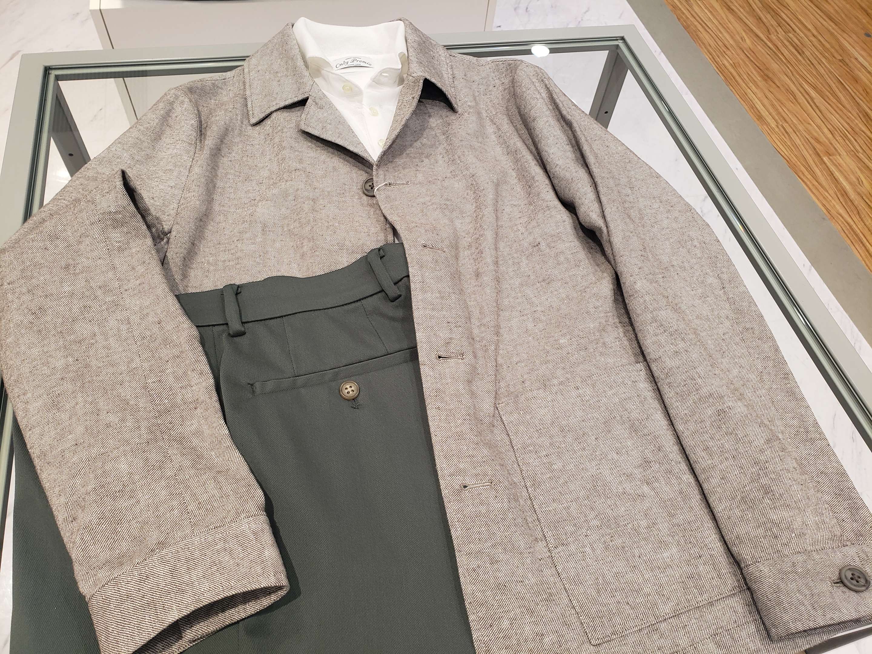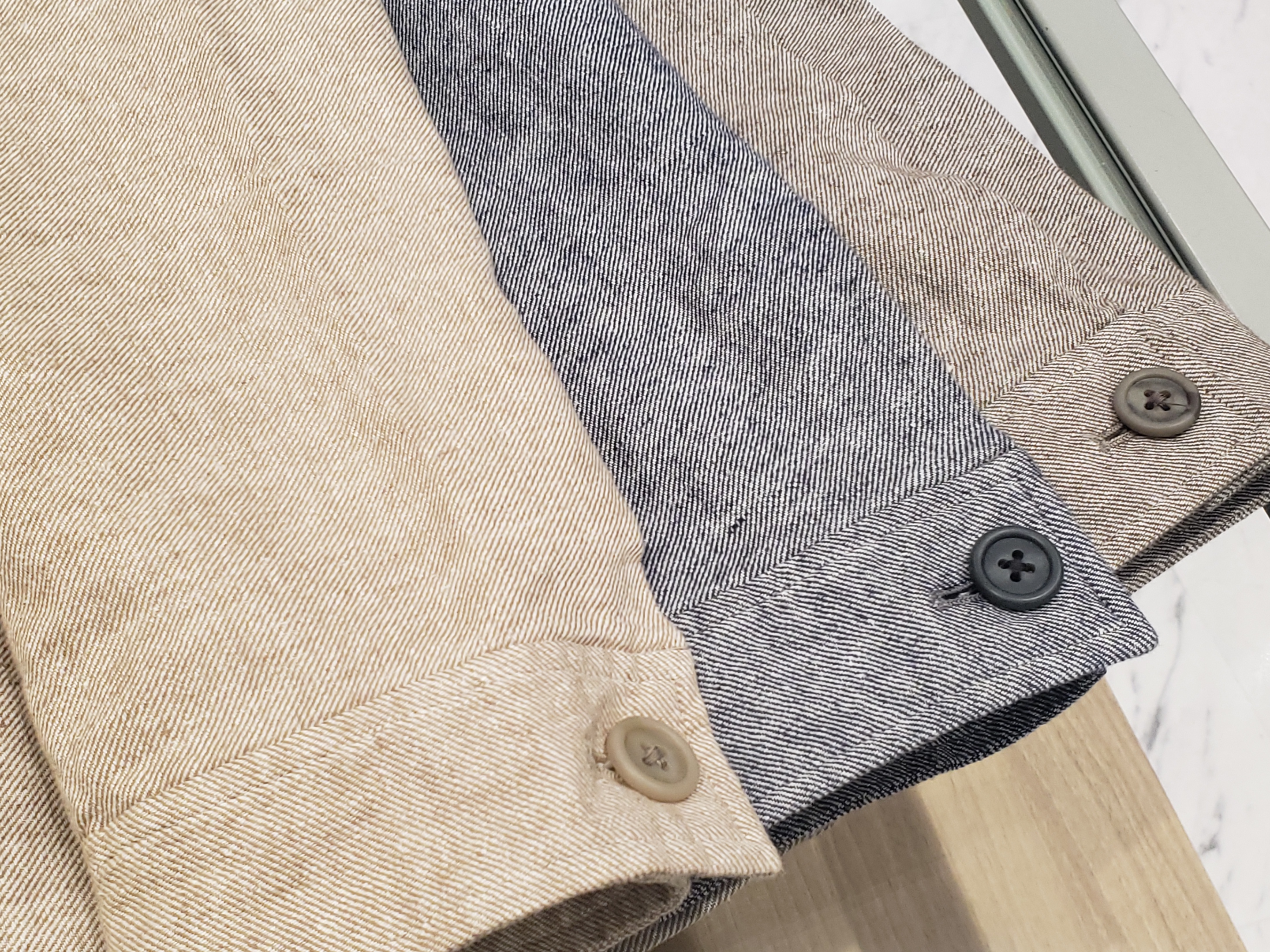 麻とコットンのみでお仕立てしているので、見え感は上品ながら決めすぎない絶妙なラインを攻める新作です。