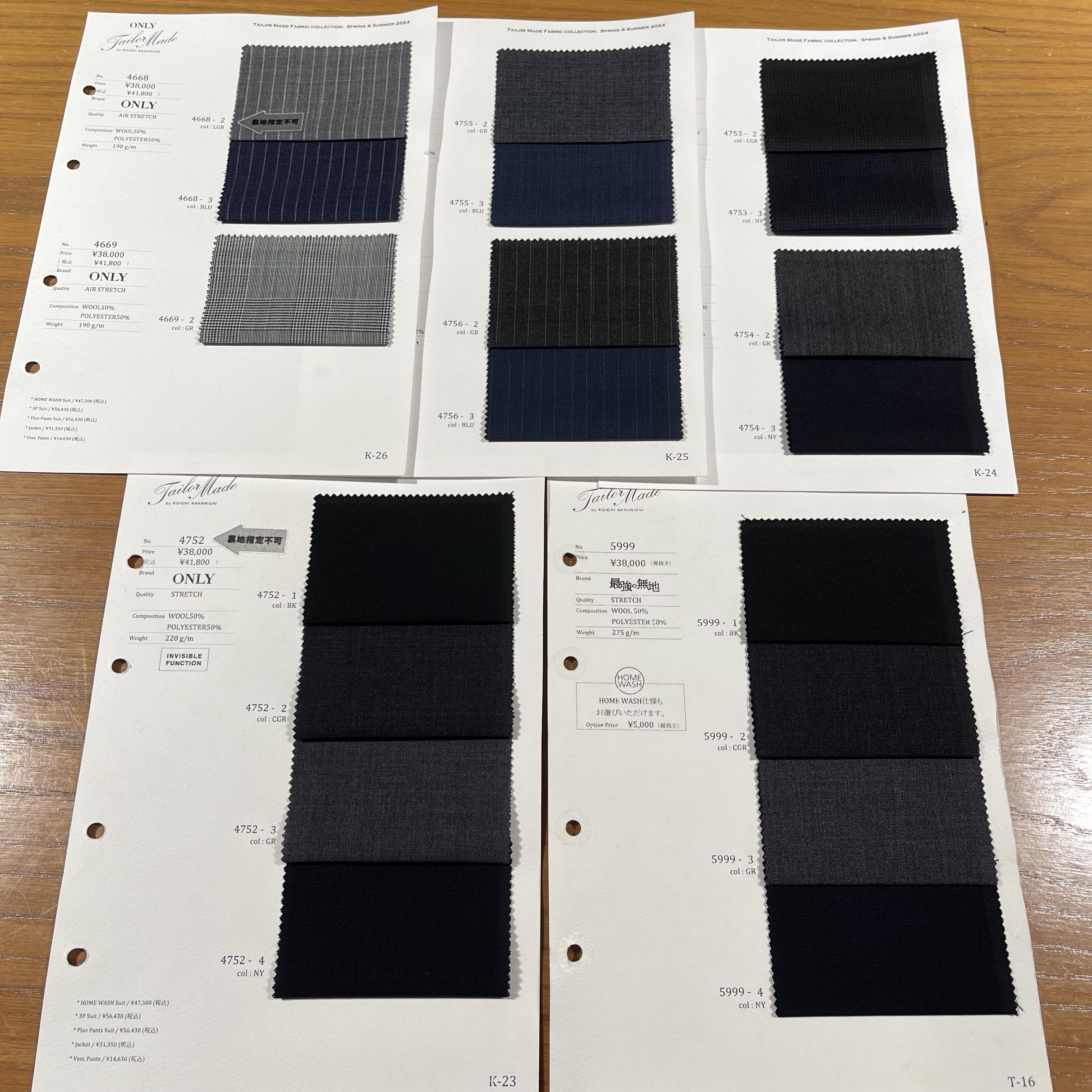 41,800円の生地に+5500円でホームウォッシュ加工が追加できます!