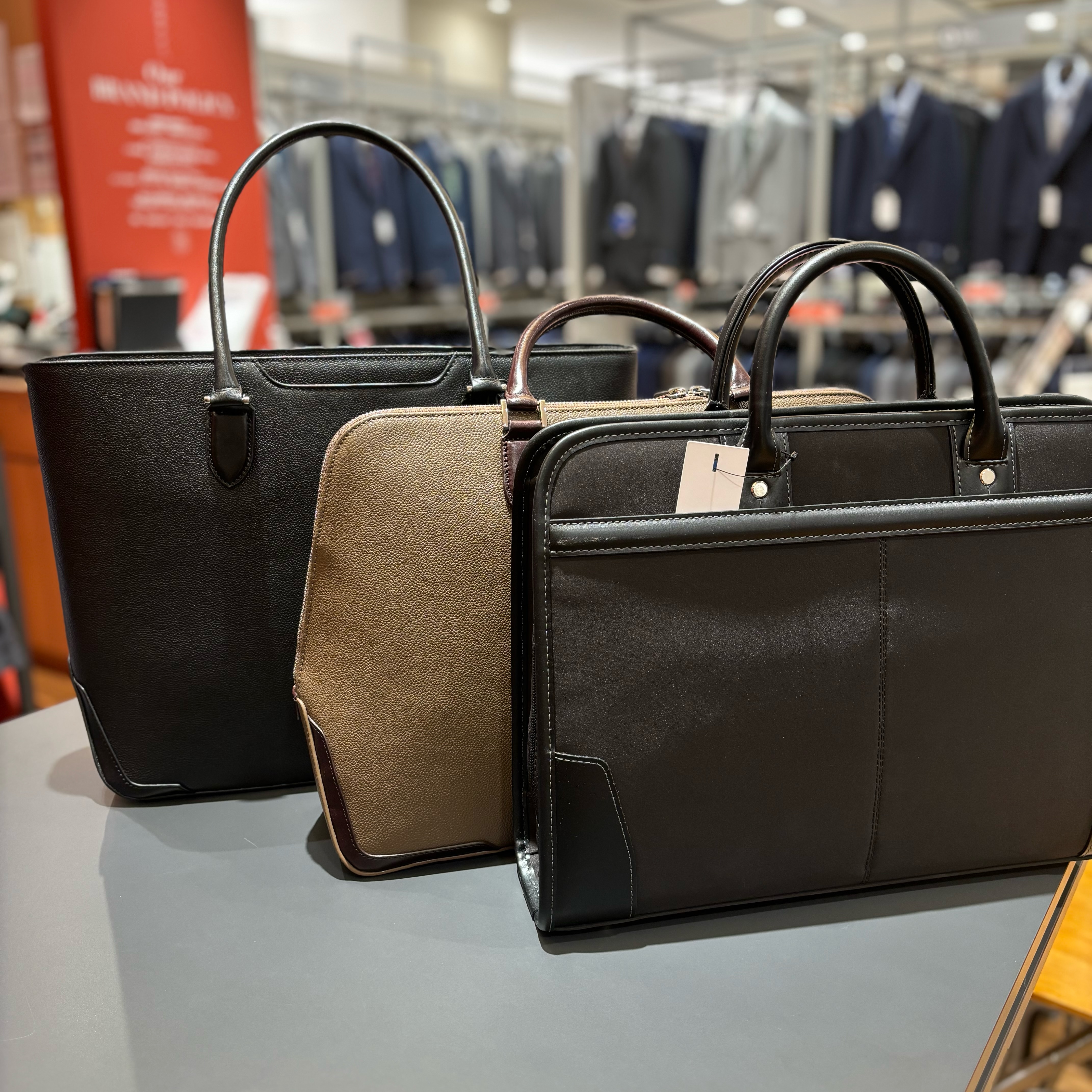当店では、ビジネスシーンにも使っていただけるブリーフタイプ、トートタイプをご用意。