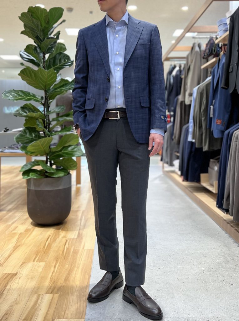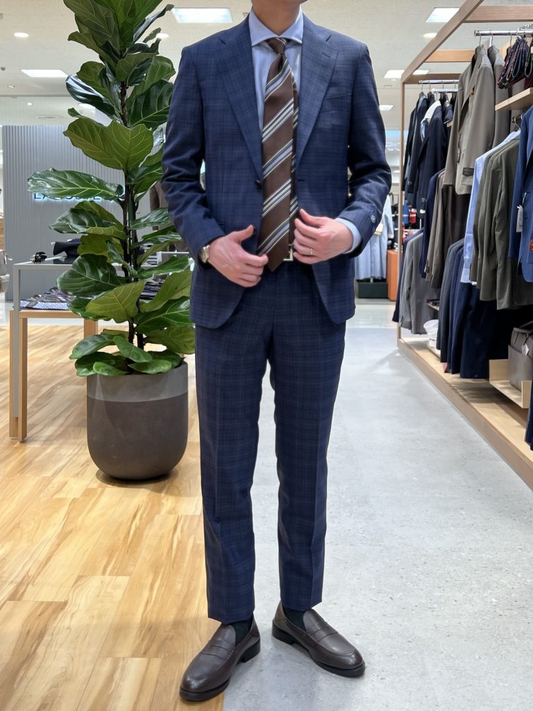 今回はブルーの爽やかなグレンチェックのスーツをチョイスしてみました😊