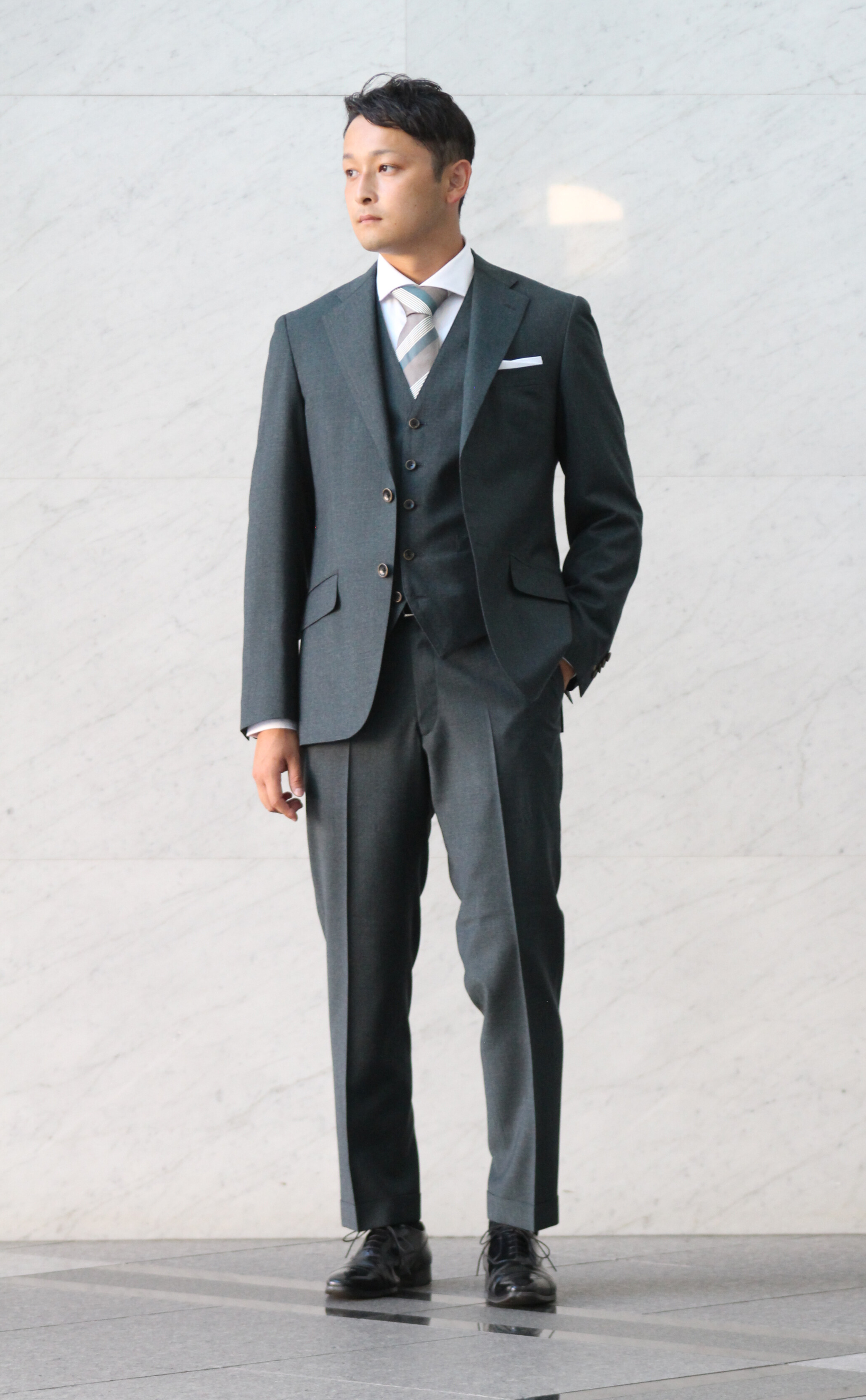 こちらも3ピースでオーダーいただきネクタイ・チーフも