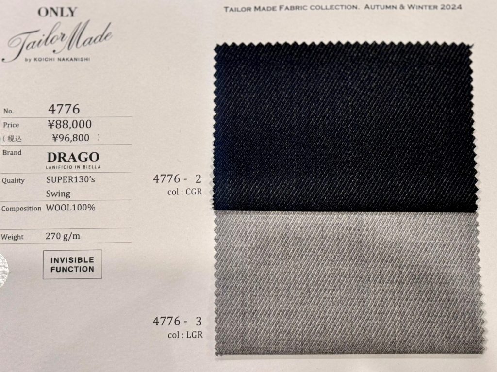 イギリス製の生地では特段珍しいわけではないのですが、イタリア生地では10~5年ほど前までカノニコのカバートクロス以外見かけることが少なかった為につい目を引いた生地となります。