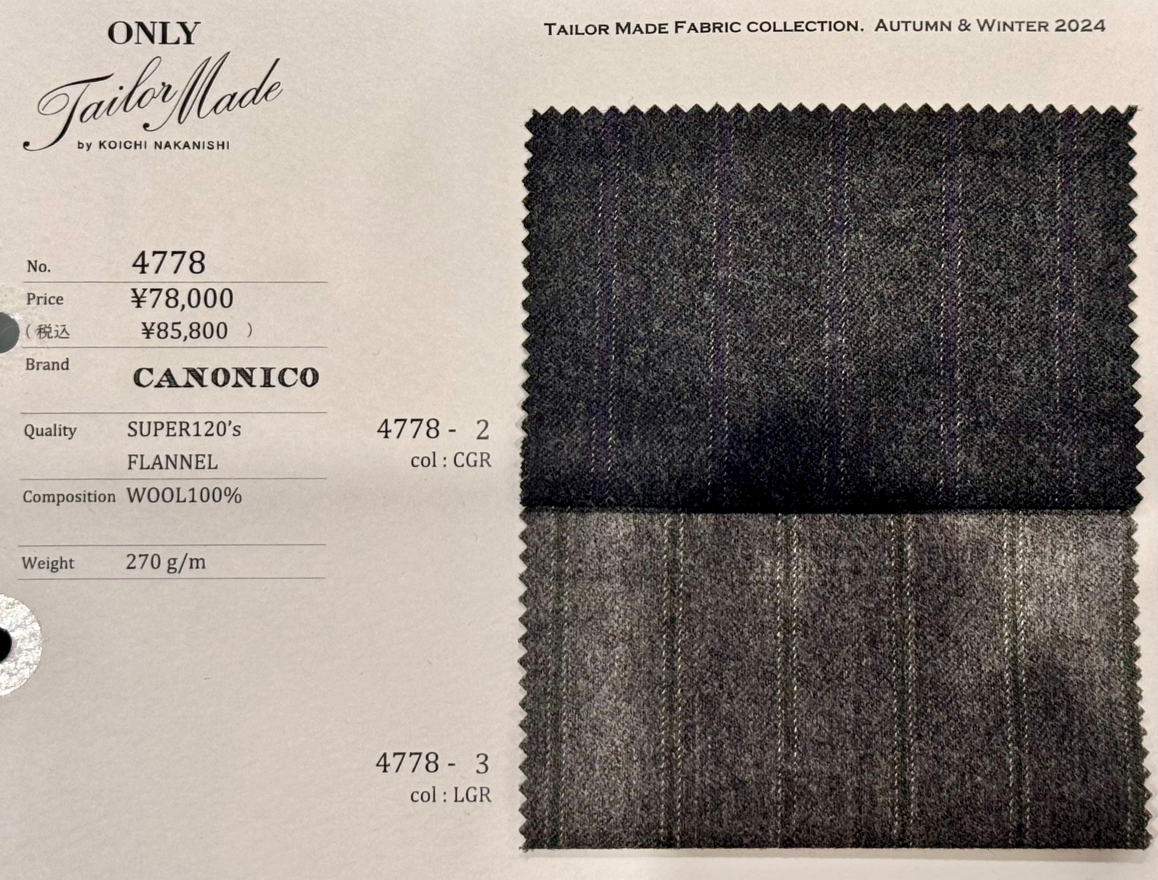最後にご紹介するのはイタリア生地で最も有名かもしれないカノニコの生地となります。