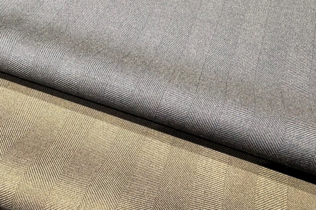 特にこちらの生地は「サンクロス」と呼ばれる光の当たり加減で色が変わって見える性質を持ちます。