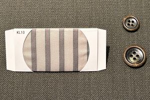 ストライプのカラーと合わせたオリーブ色の裏地は