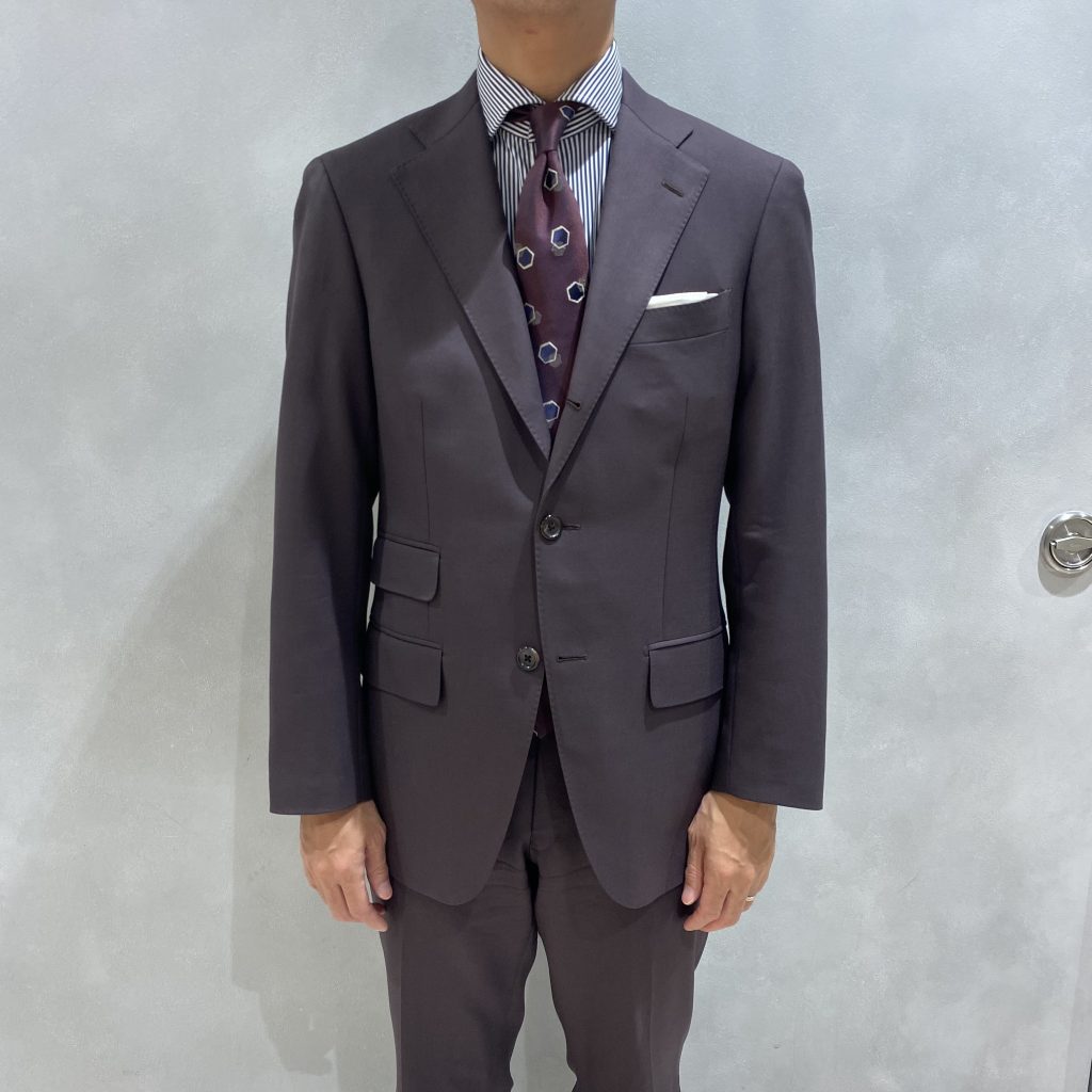 老舗のイタリア生地メーカードラゴ社の高級原毛SUPER130’Sをあえて、60番双糸の太引きにした贅沢なスーツ。英国生地のようなハリコシがスーツの重厚感と仕立て映えの良さをより際立てます。後染めの仕上げで色ムラが無く、なんとも言えない洒落感のある赤みがかったブラウンのスーツに仕上がっております。私と被ってしまうことは恐縮にはなりますが、この秋冬にブラウンのスーツをご検討されているお客様に優先してお見せしたい生地になります。