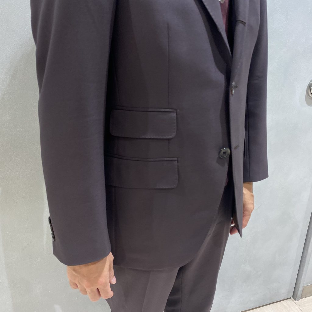 前身頃のボタンを段返り3釦、ポケットは、チェンジポケットをオプション。ディテールに変化を加えることもオーダースーツにしかできない楽しみでもあります。