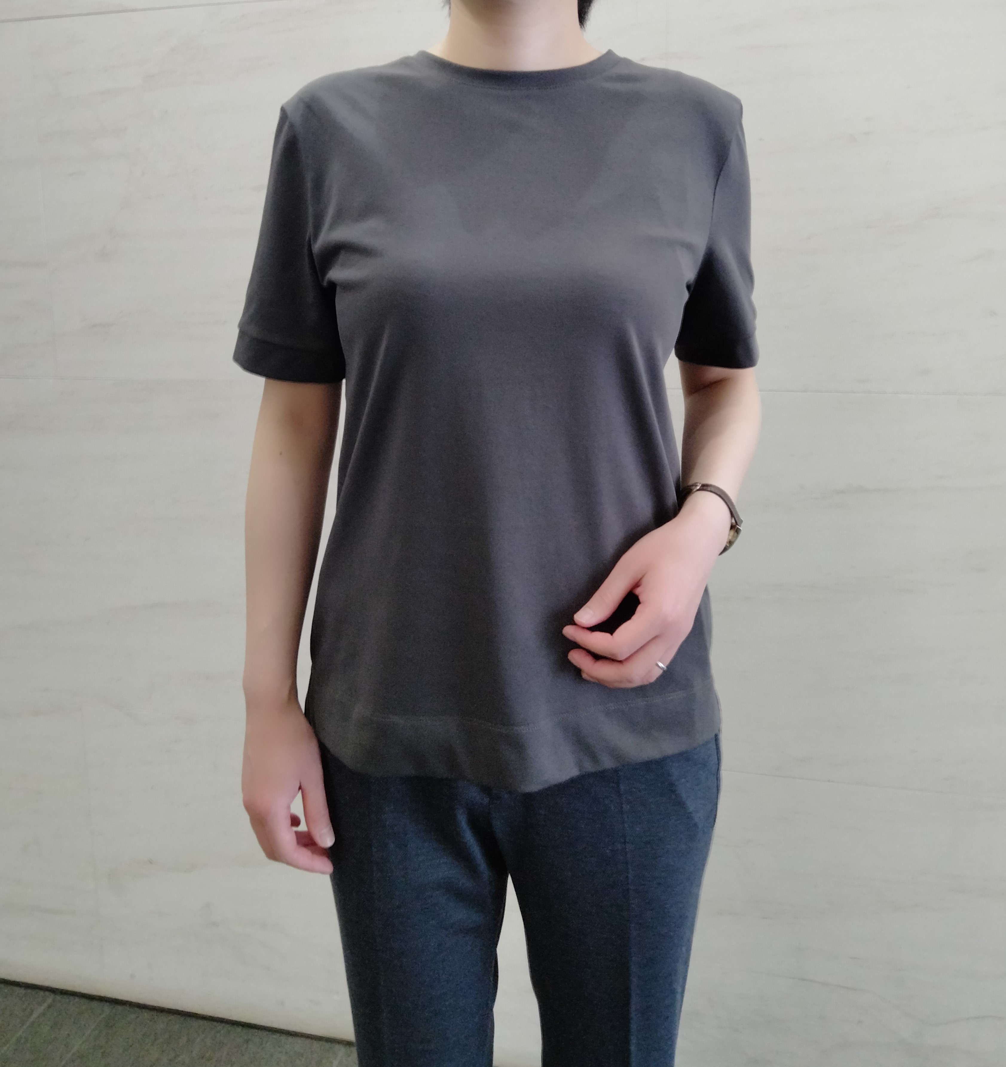 すっきりした印象のチャコールグレーTシャツ✨