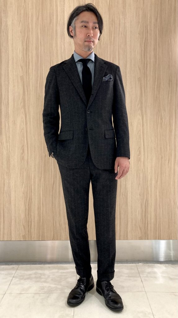 柔らかく温かい高品質なメリノウールを使ったウールジャージー素材でフランネルのようなエレガンススーツを作りました。