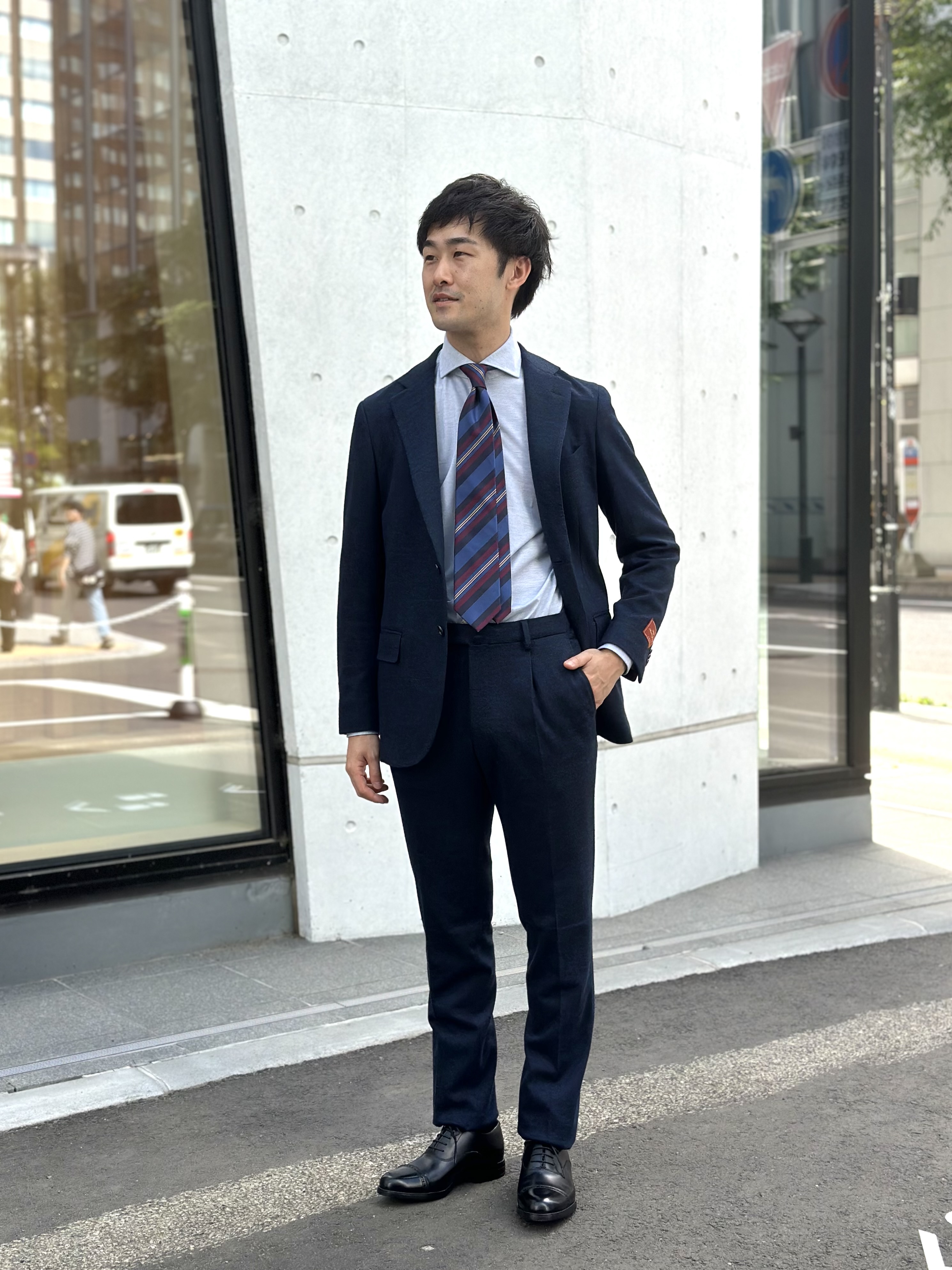 立体的な仕立てと相まってデキるビジネスマンを演出します。