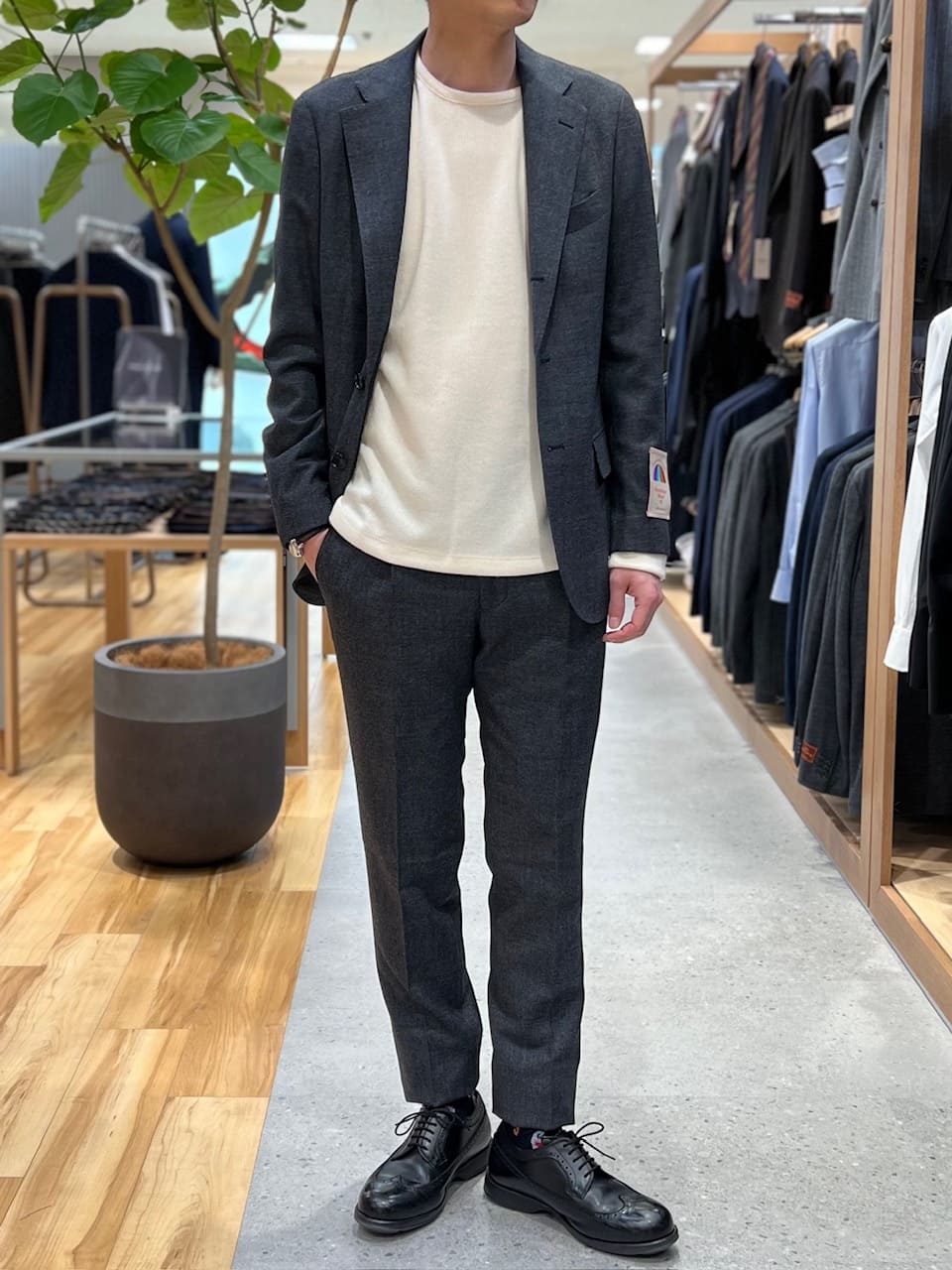スーツらしいカッチリさもしっかりありつつ、ニットを合わせたカジュアルスタイルでも活躍してくれます💁‍♂️