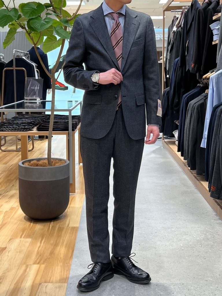 そんな今回は今季の最新作「パラシュートウール」生地で仕立てたスーツを紹介いたします!