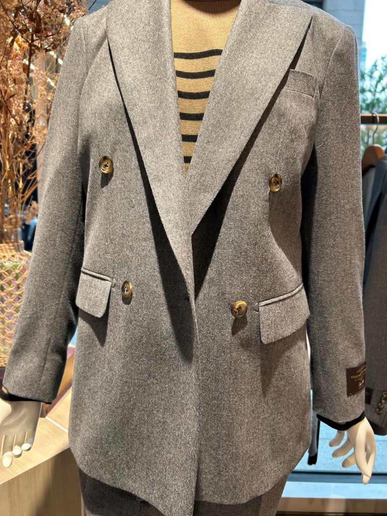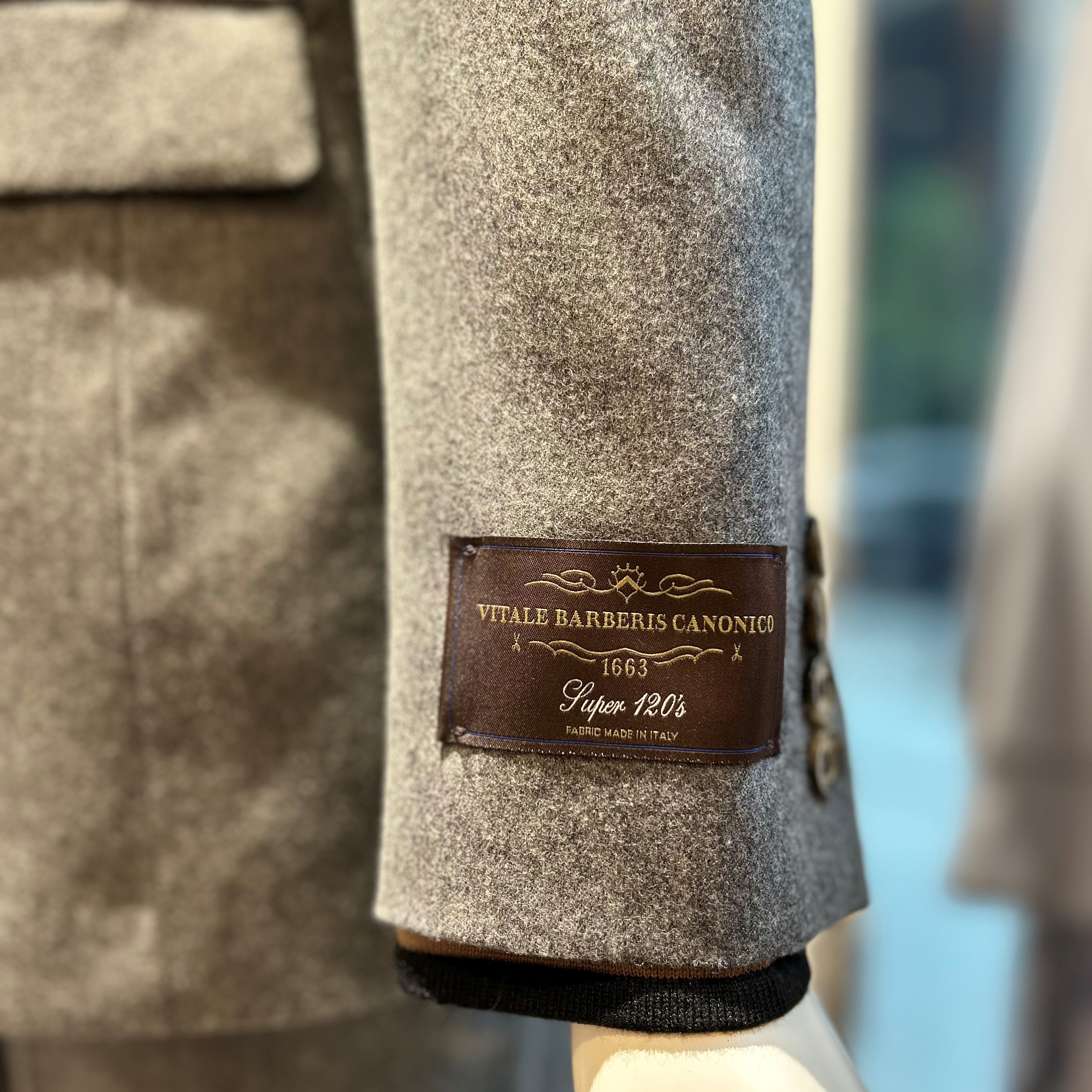 秋冬はカノニコ社のウールサキソニーを用い、温かみとリラックス感を兼備する一着に仕上げました。