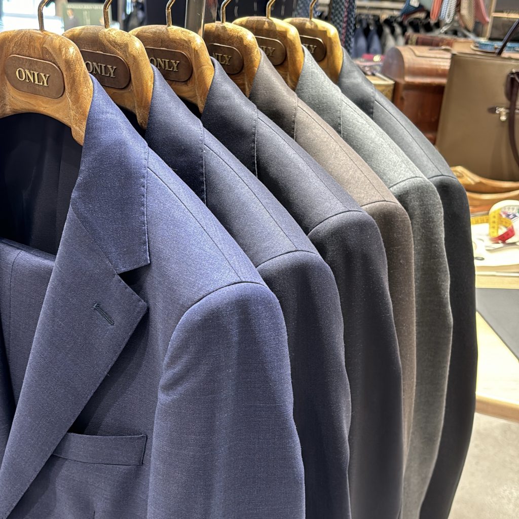 「結婚式用のスーツが欲しい!」と来店されるお客様も多く、店内には
