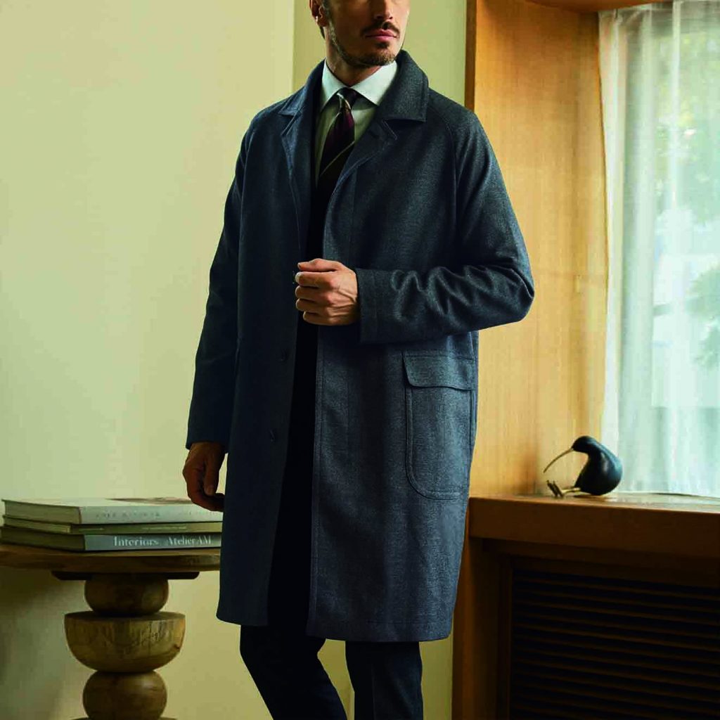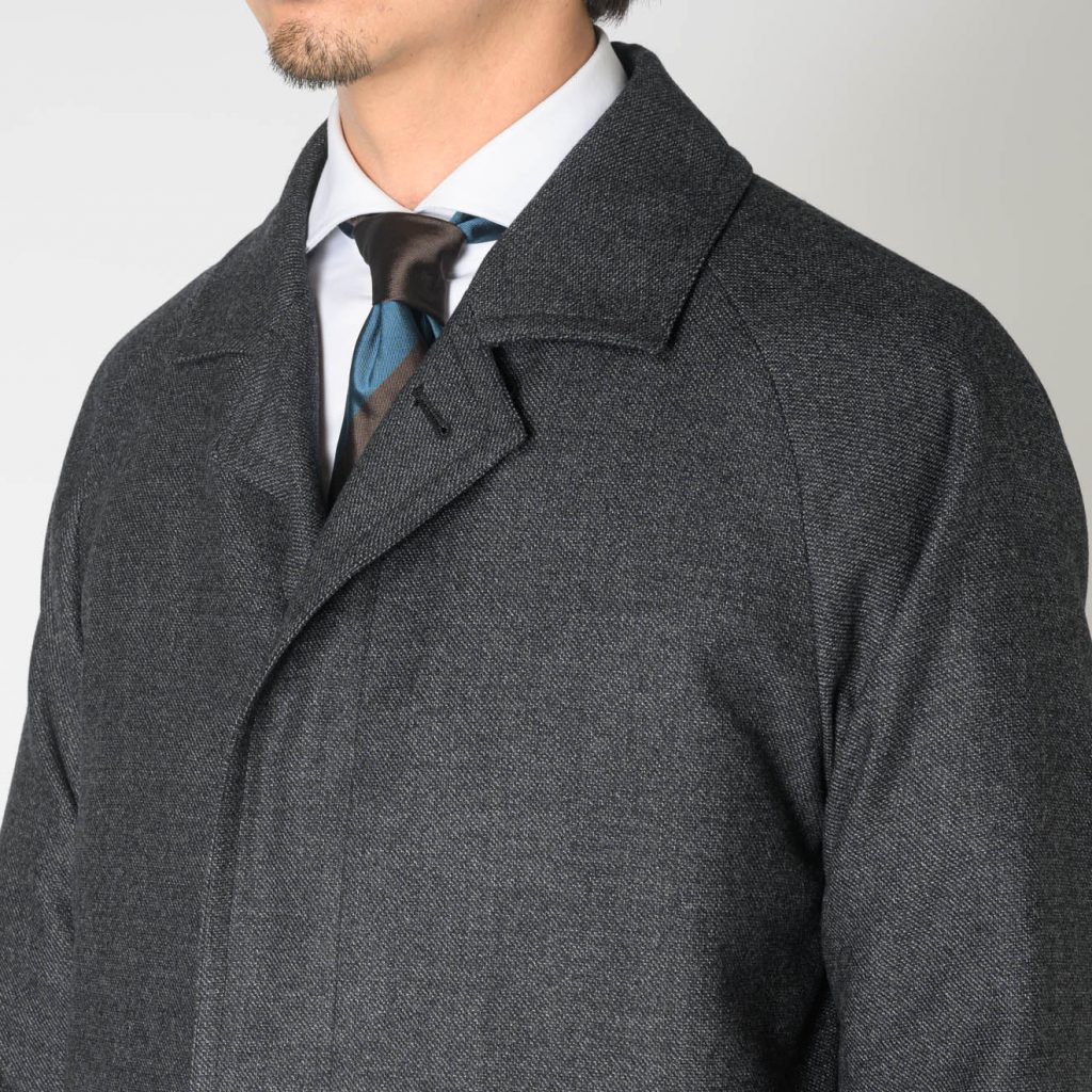 そんなスーツと同じ原毛をやや太い糸に紡いで織った、パラシュート ウール製バルカラーコートを今回のブログではご紹介します。