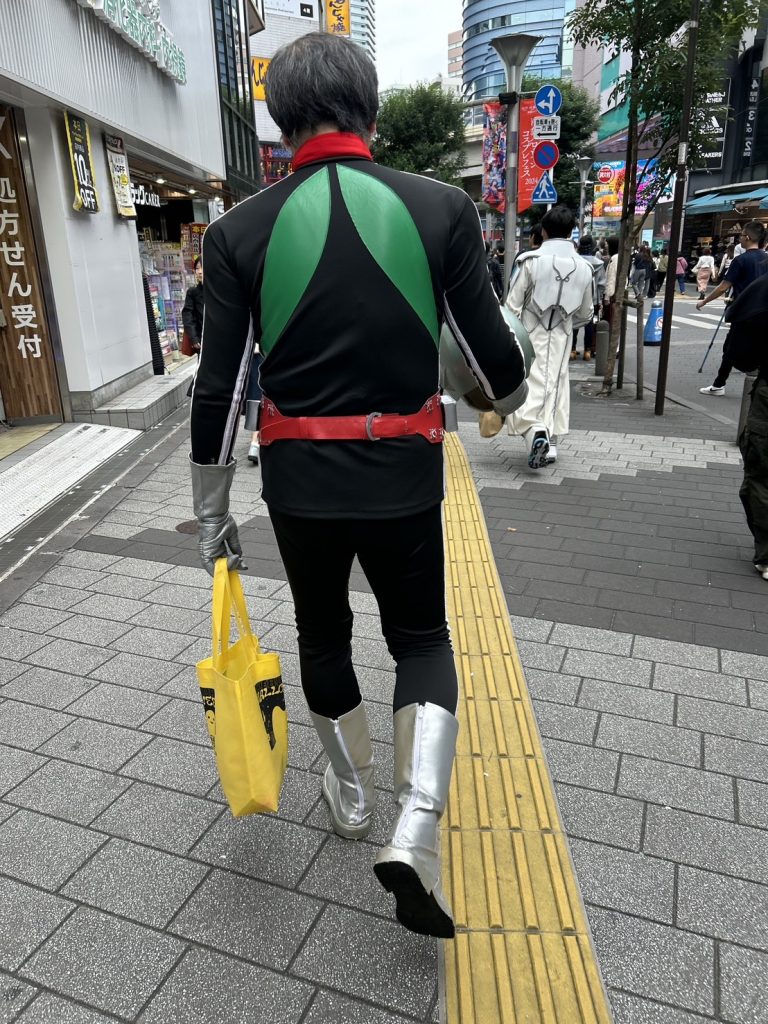 休憩中にコンビニに行こうとしたら目の前を仮面ライダーが歩いてました。