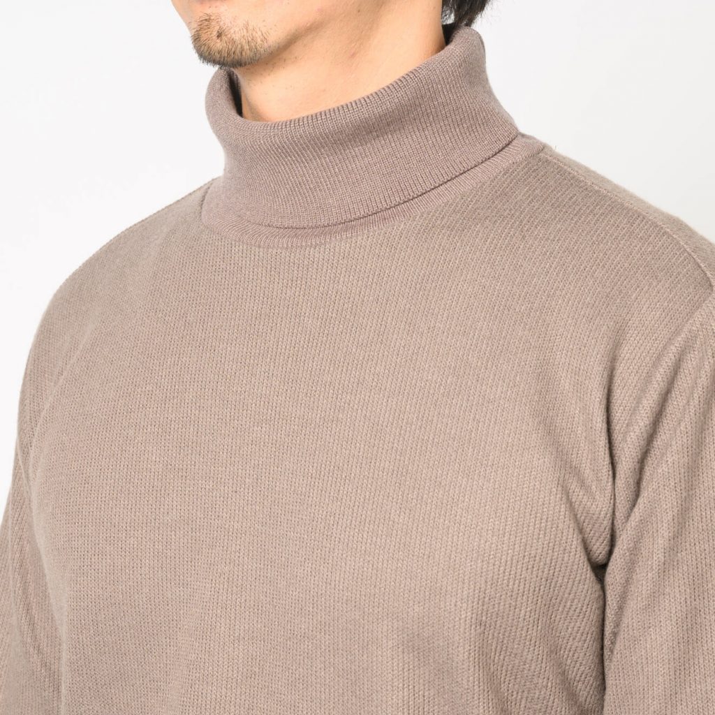 ソフトタッチなリブ編みジャージ素材を使用したよりニット見えするボディと、共生地ではタートルネックを作れなかった為ネック部分のみを別で編み立て、つなぎ合わせるという凝った作りとなっております🪡