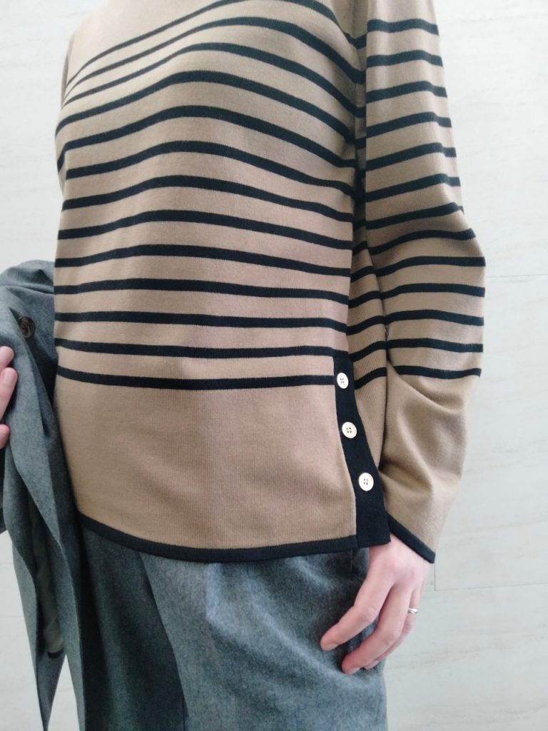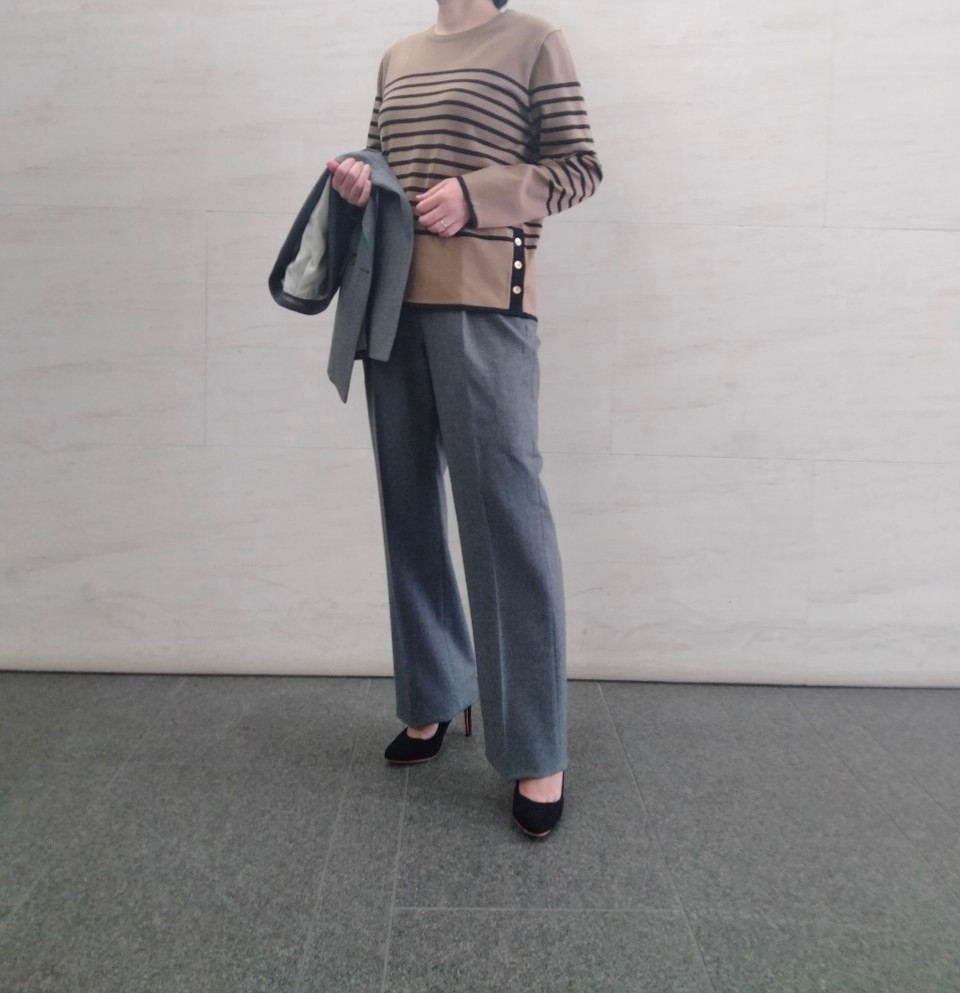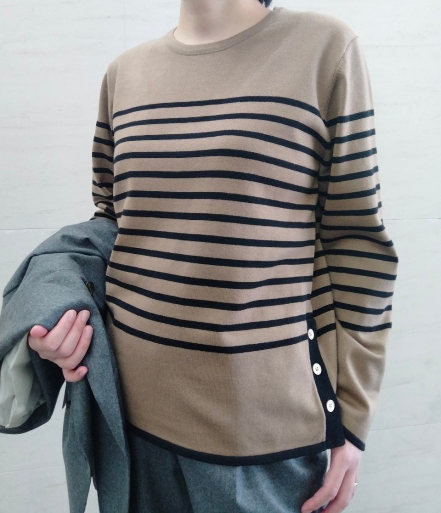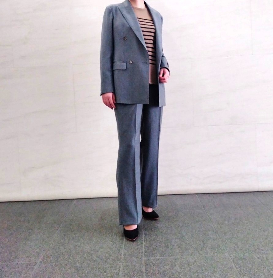 【スタイリスト別注✨グレー4釦スーツとベージュボーダーニットのご紹介】ONLYWOMEN烏丸店