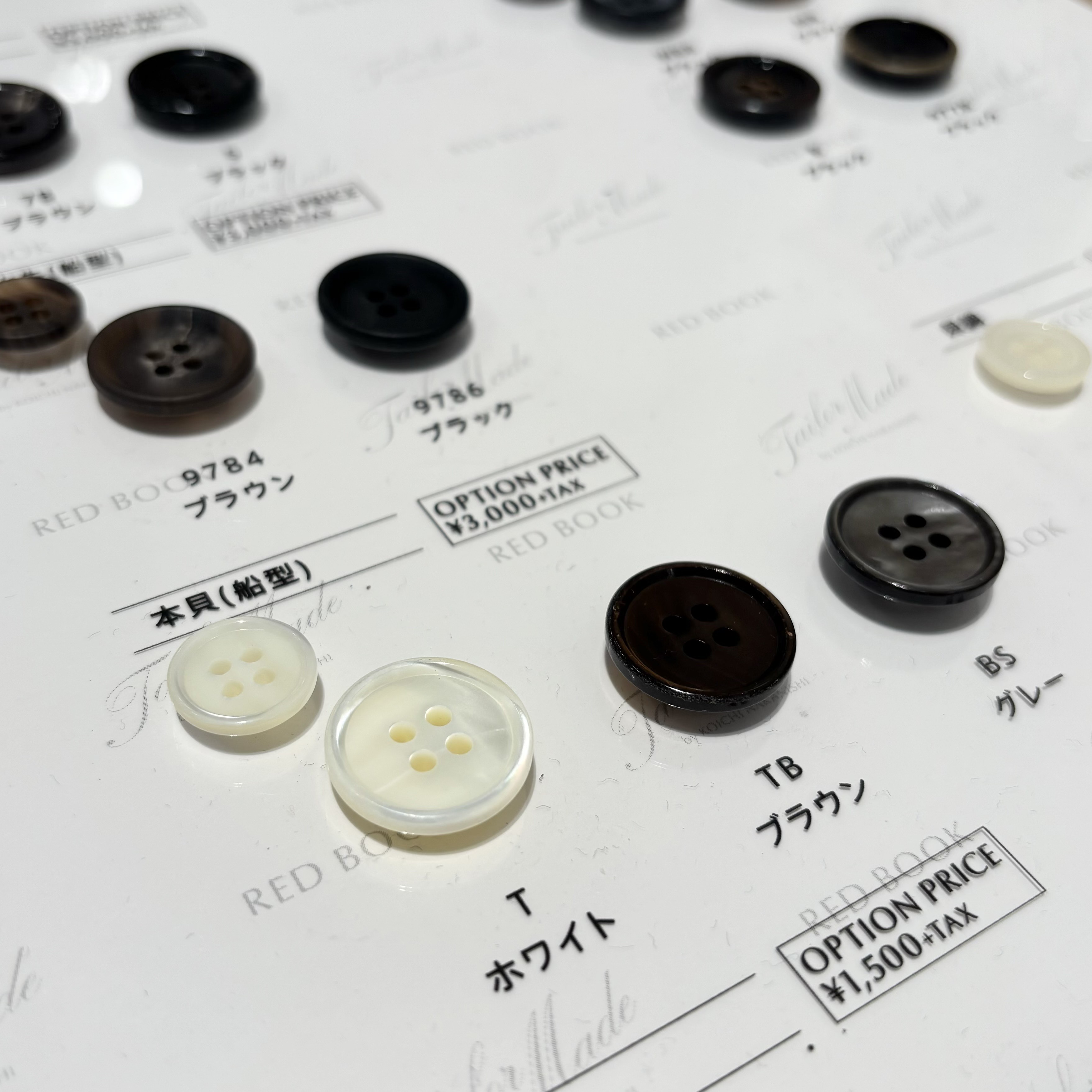 テーラーメイドでは、裏地やボタンの選択は言うまでもなく、