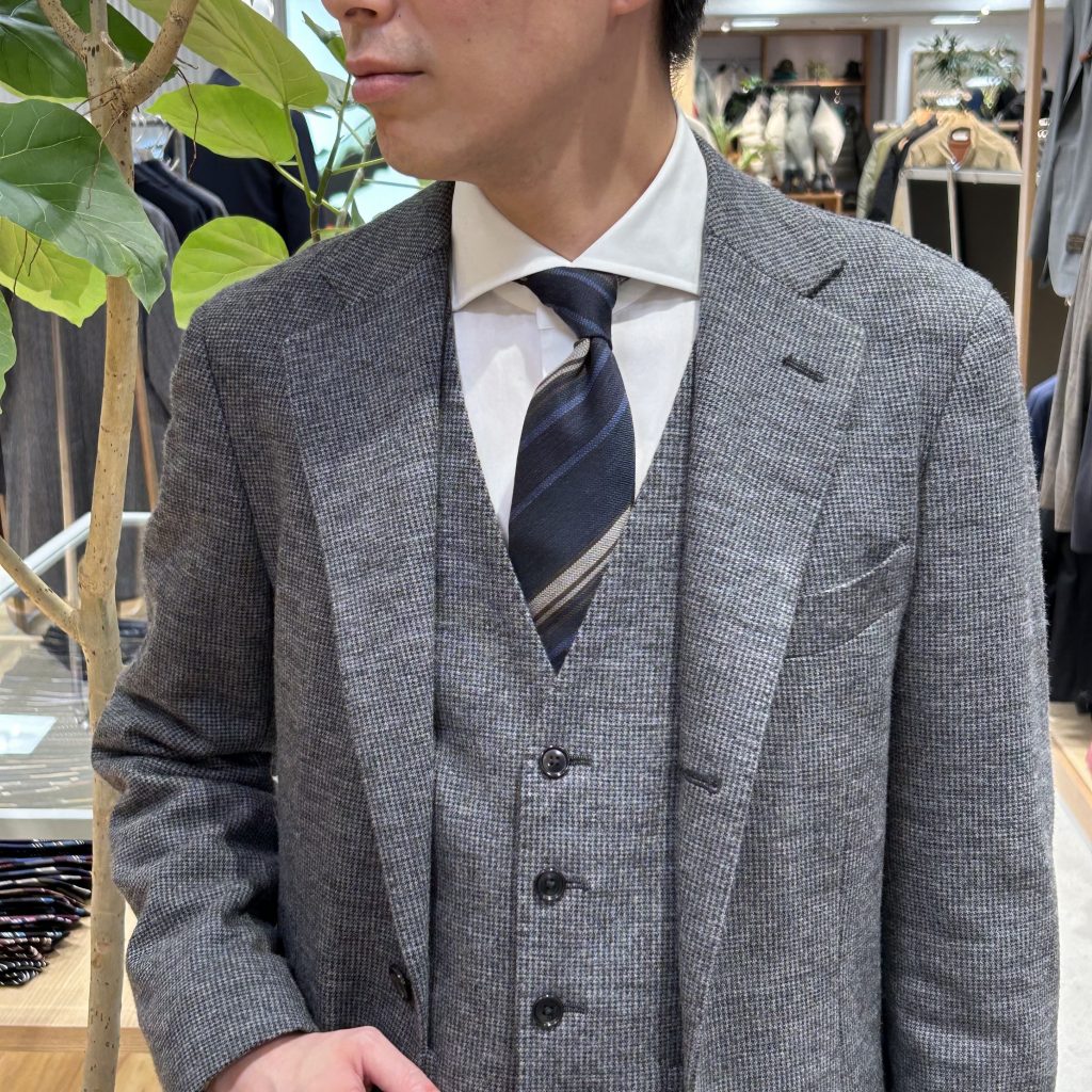 メリノジャージースーツは上質なメリノウールを50%使用し、メリノ特有の上品さと温かみが特徴的な生地で仕立てているスーツになります✨