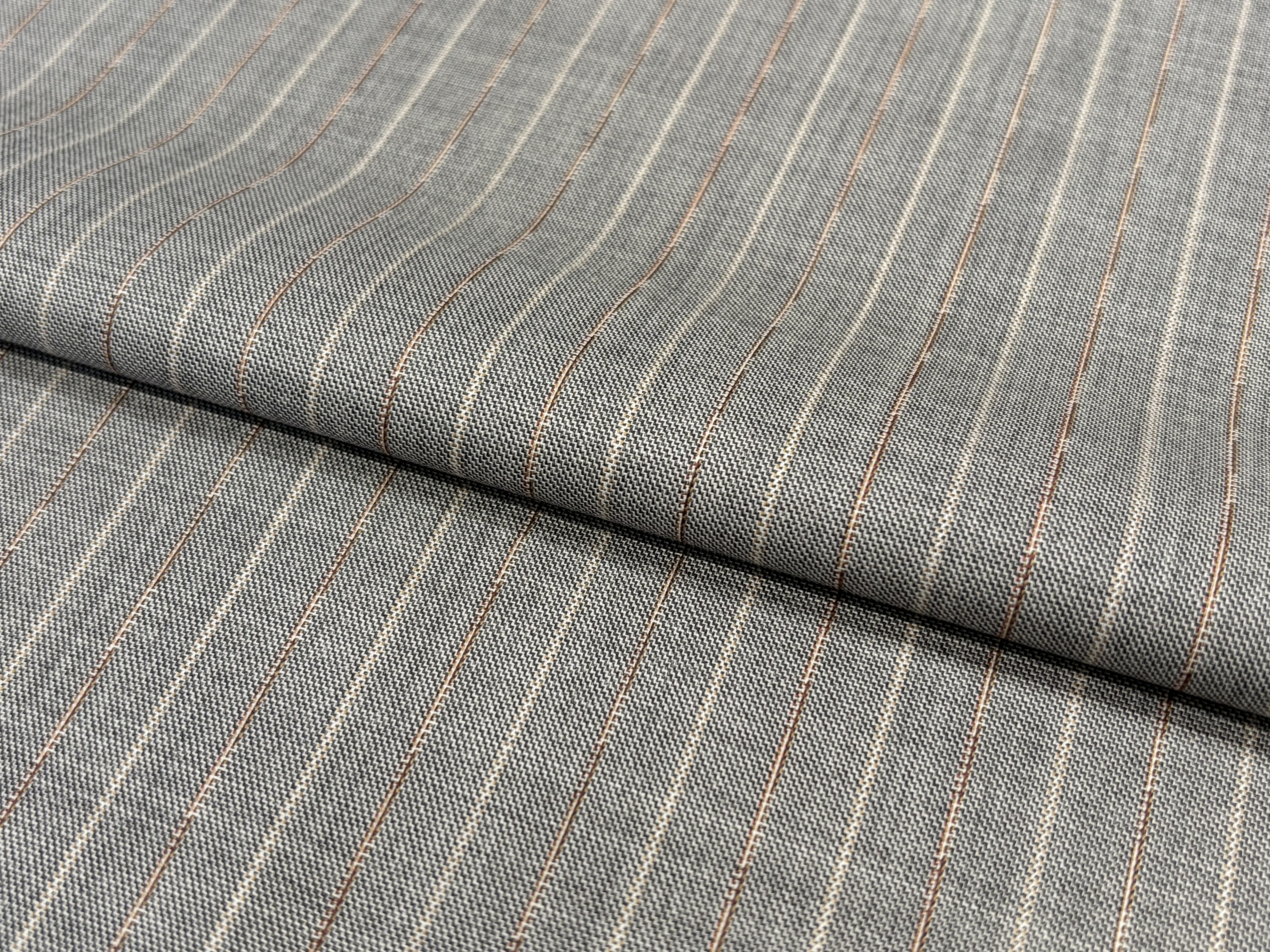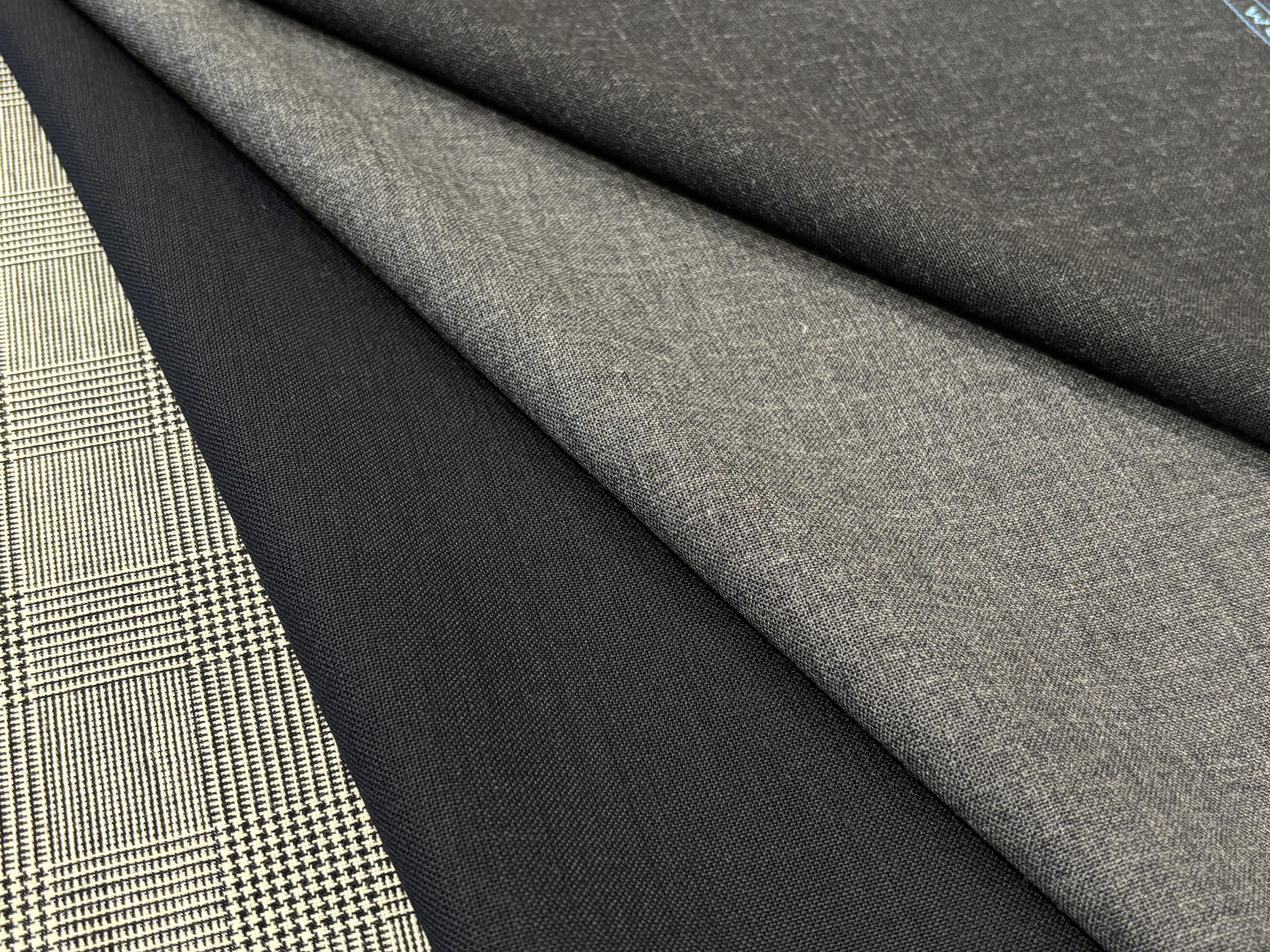 光沢は少なく涼しげな質感で、イギリス生地らしいがっしりとしたハリコシがあるのでとても仕立て映えする生地です👀
