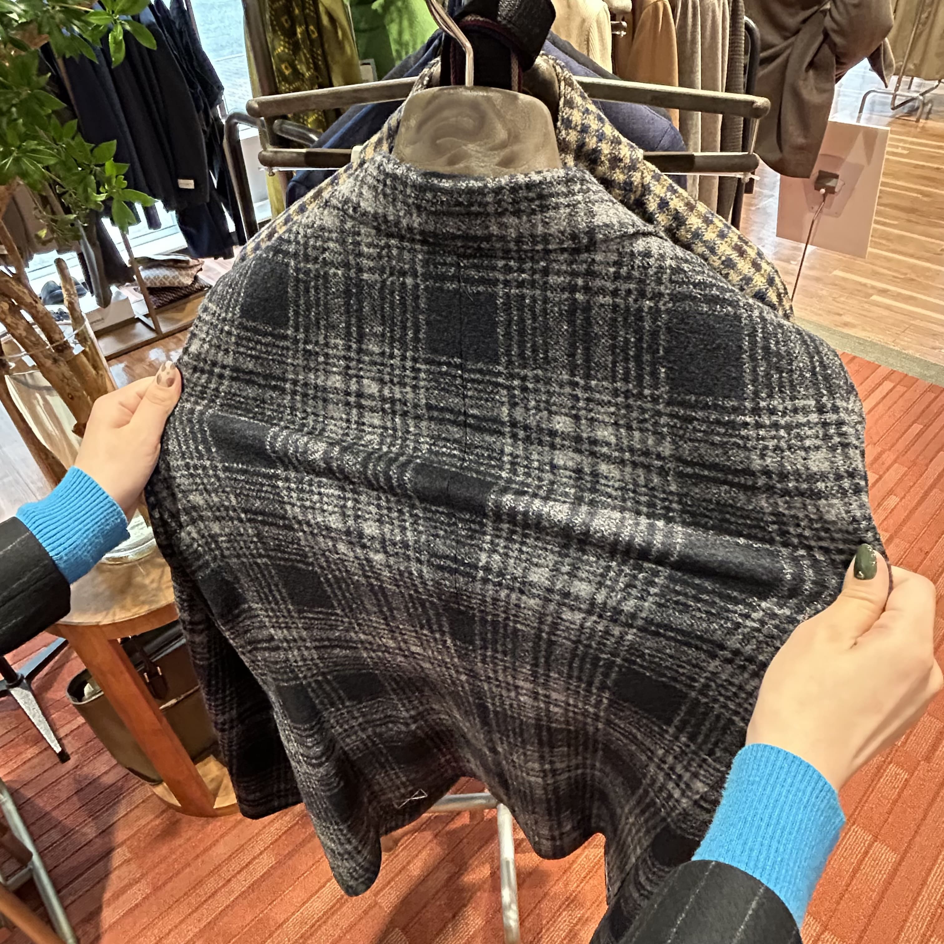 ただオシャレなだけでなく、ツイードライクな生地は防寒性にも優れておりますし、表地•背裏地ともに伸縮性のある素材なので、着心地も抜群です🏃🏃🧎🧎
