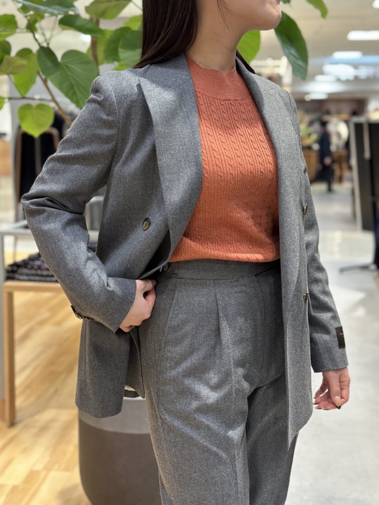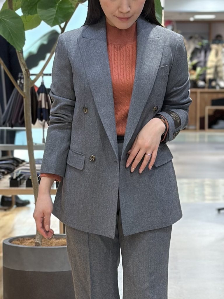 温かみのあるカノニコ社のウールサキソニーを用い、温かみとリラックス感を兼備する一着です