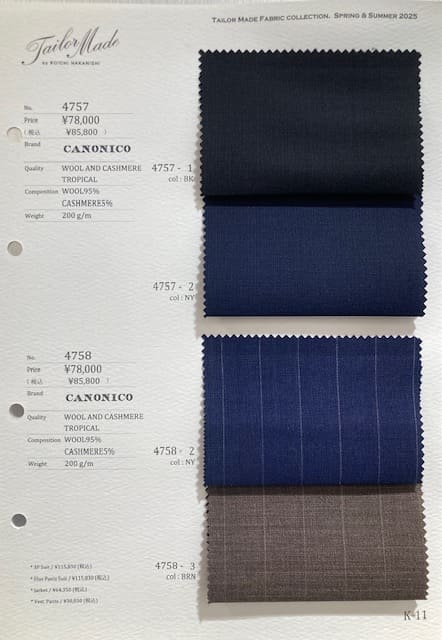 平織のサマーカシミヤ生地でなんといっても200g/mという軽さが魅力!!