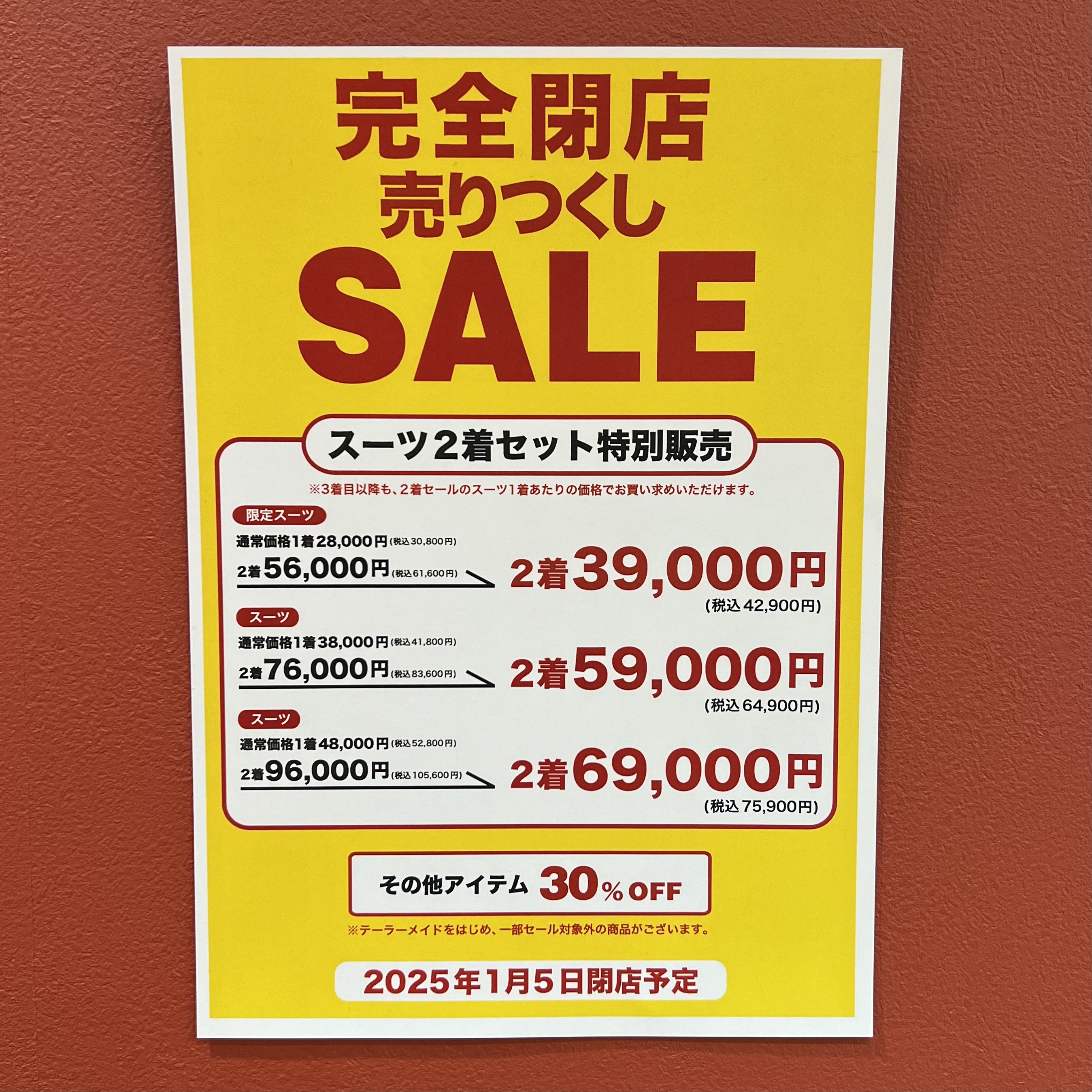 スーツは2着セットで割引となっております!