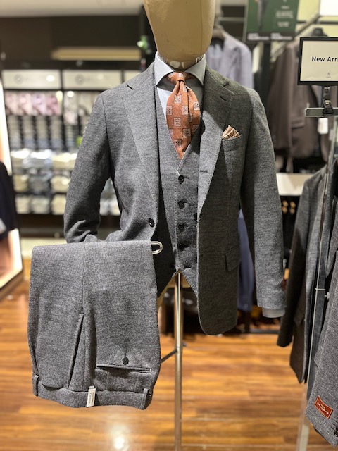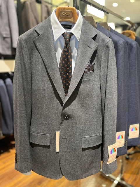 堅苦しい芯地や肩パッドを省いたモデルの軽量さを最大限活かしながらも、冬用スーツの役割をきっちりこなす温かさを両立させた自信作です!