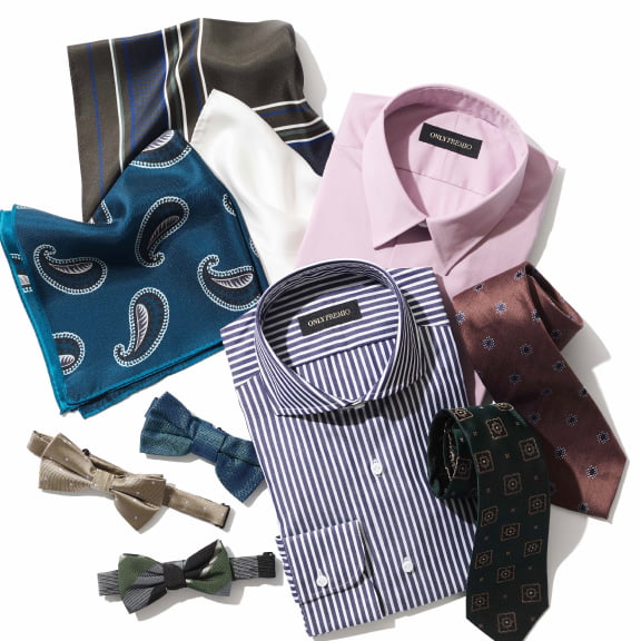 成人式向けの既製品スーツはもちろん、単品のベストやデザインシャツ、イタリア生地のネクタイなど豊富にドレスアップ小物を取り扱っております🍷