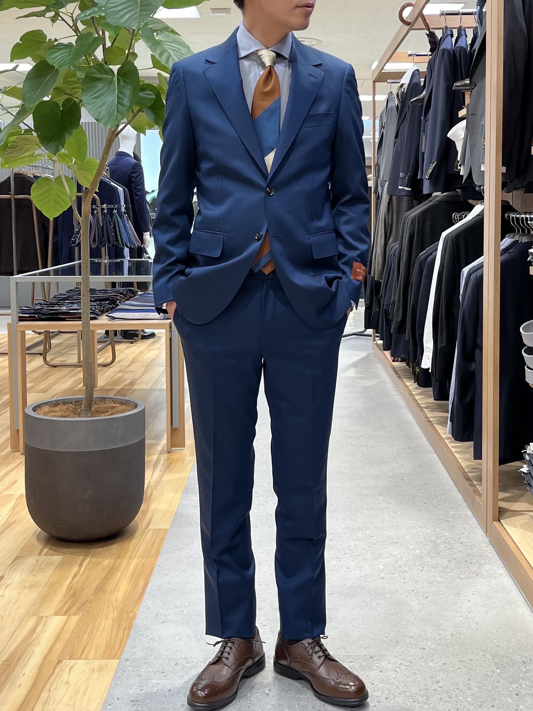 今回はブルーのスーツにブルーのシャツ、ブラウン系の色を配したネクタイを合わせ、統一感を意識したコーディネートをしてみました🎶